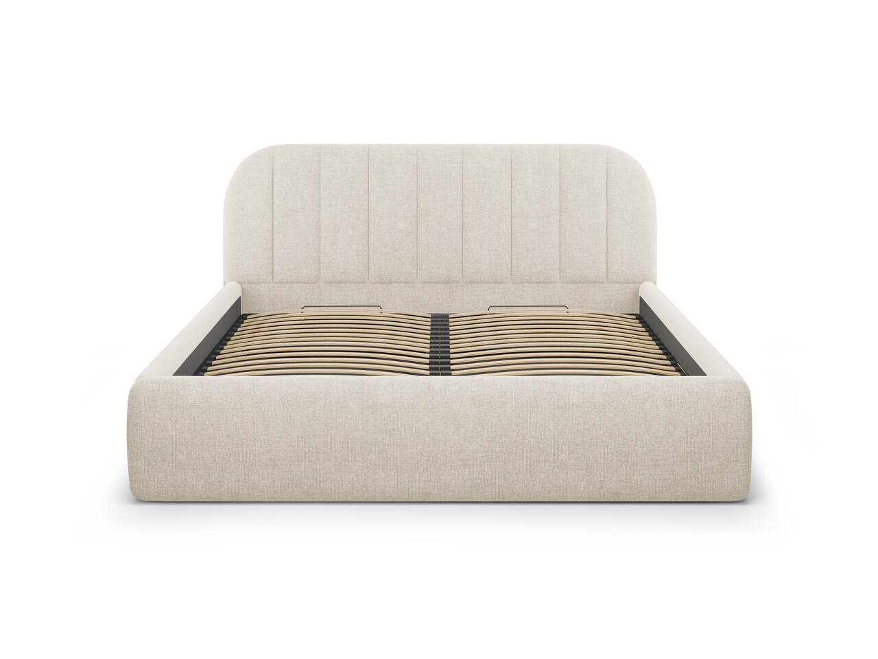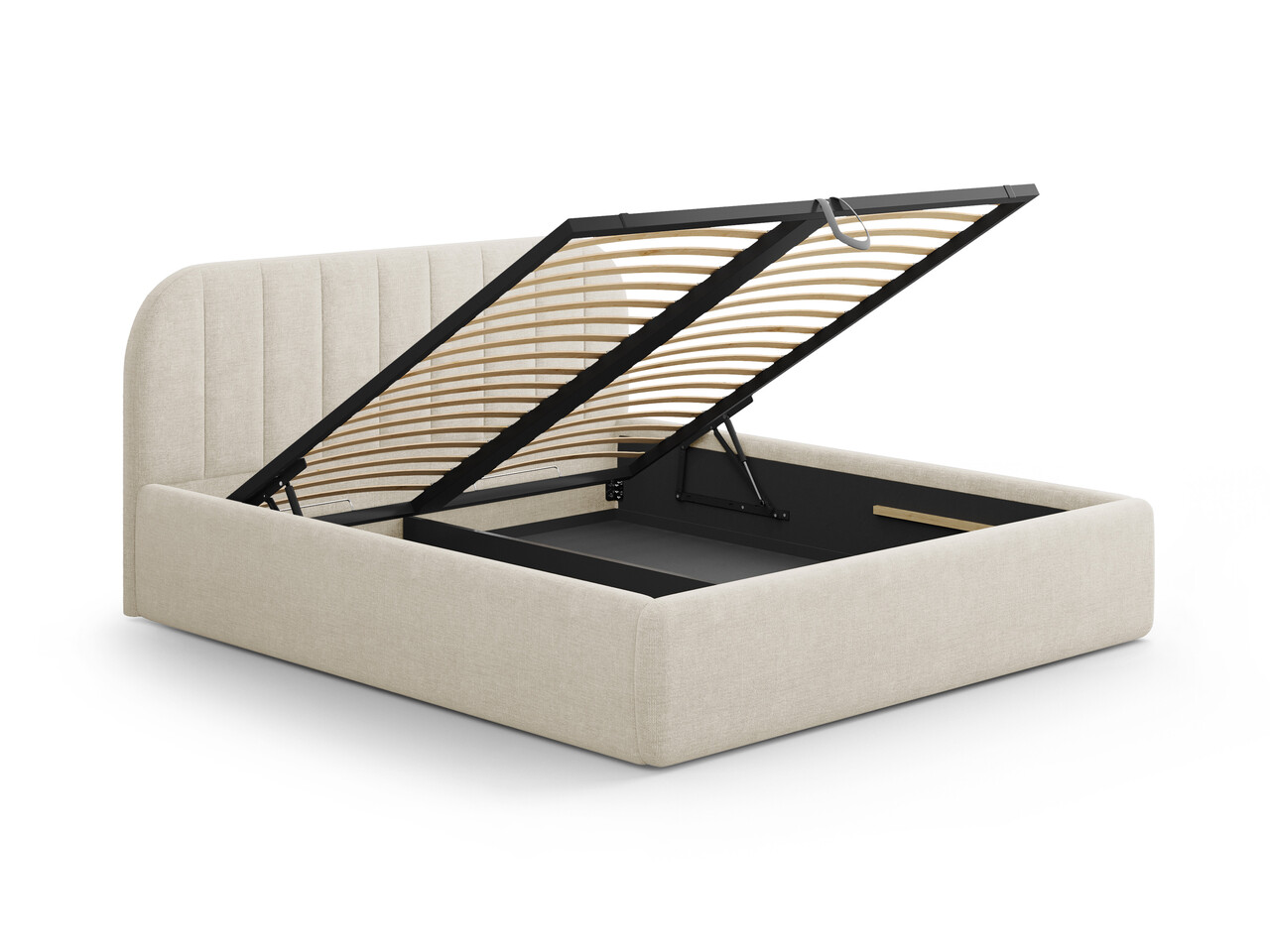 Pat tapitat cu somiera rabatabila si lada depozitare 160x200 cm Windsor & Co Juno tesatura structurata bej deschis