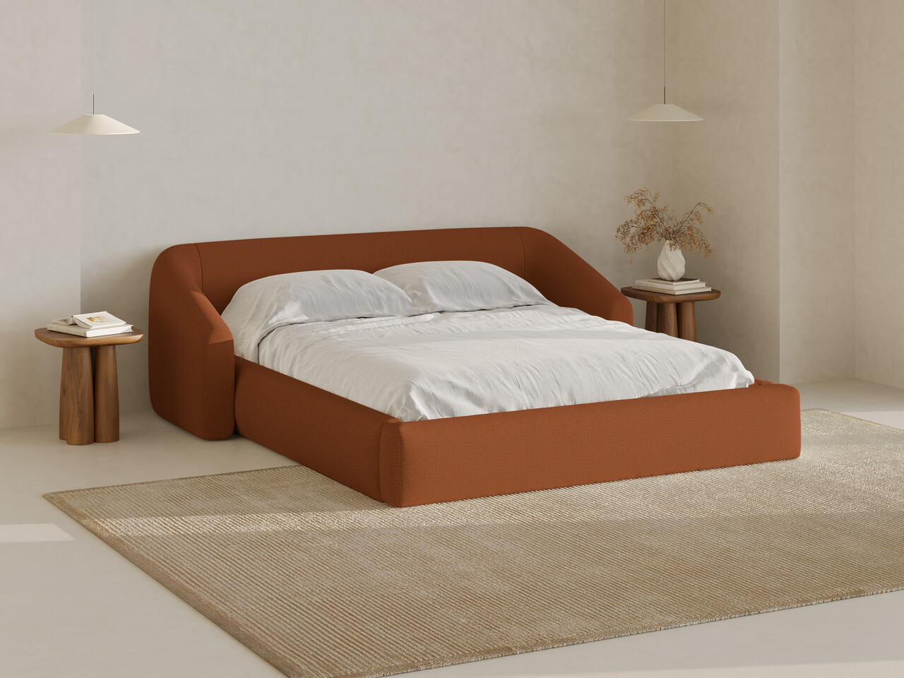 Pat tapitat cu somiera rabatabila si lada depozitare 180x200 cm Windsor & Co Halo tesatura structurata caramiziu