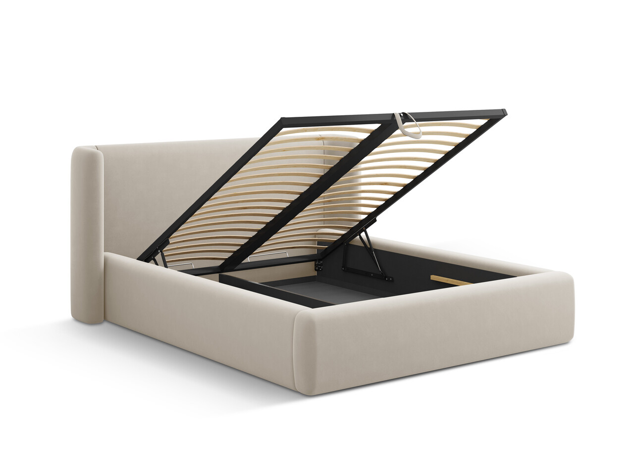 Pat tapitat cu somiera rabatabila si lada depozitare 180x200 cm Windsor & Co Jason catifea bej inchis