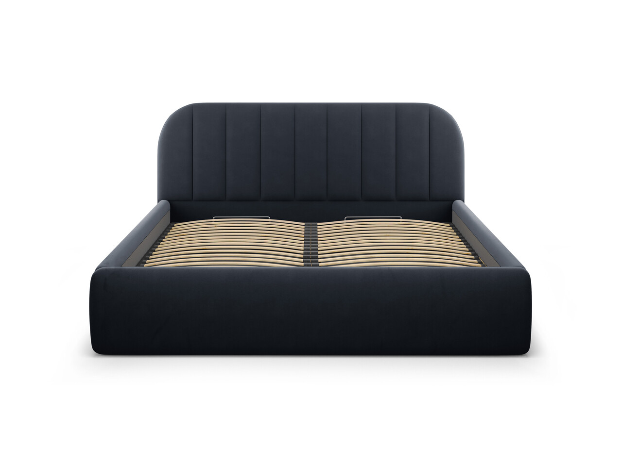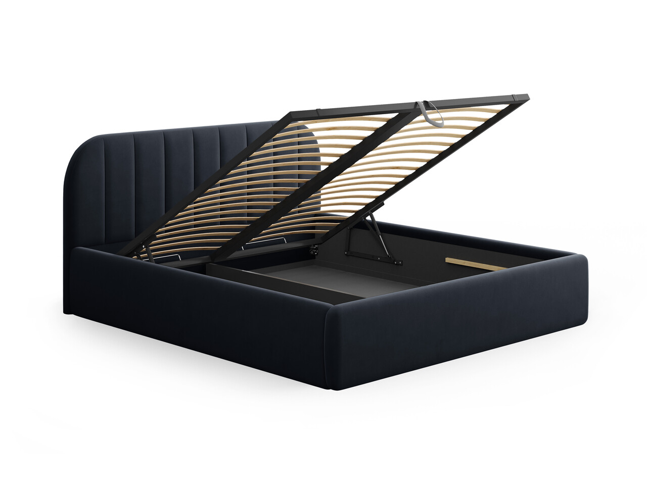 Pat tapitat cu somiera rabatabila si lada depozitare 180x200 cm Windsor & Co Juno catifea albastru inchis