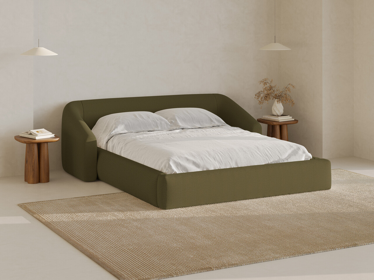 Pat tapitat cu somiera rabatabila si lada depozitare 200x200 cm Windsor & Co Halo tesatura structurata verde