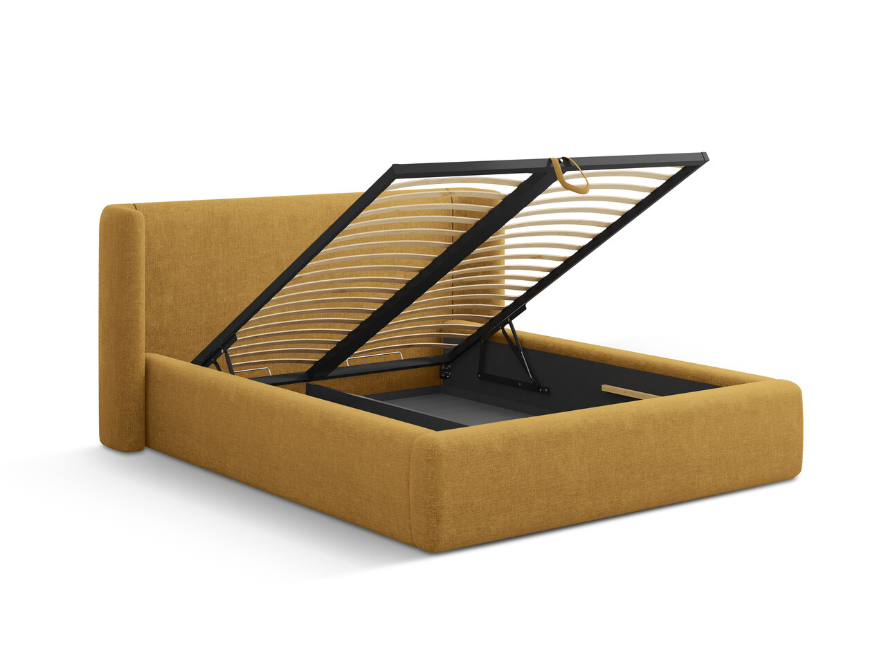 Pat tapitat cu somiera rabatabila si lada depozitare 200x200 cm Windsor & Co Jason tesatura structurata verde oliv deschis