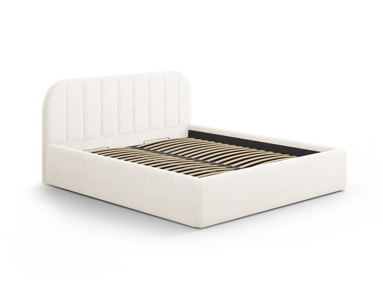 Pat tapitat cu somiera rabatabila si lada depozitare 200x200 cm Windsor & Co Juno tesatura structurata ivoriu
