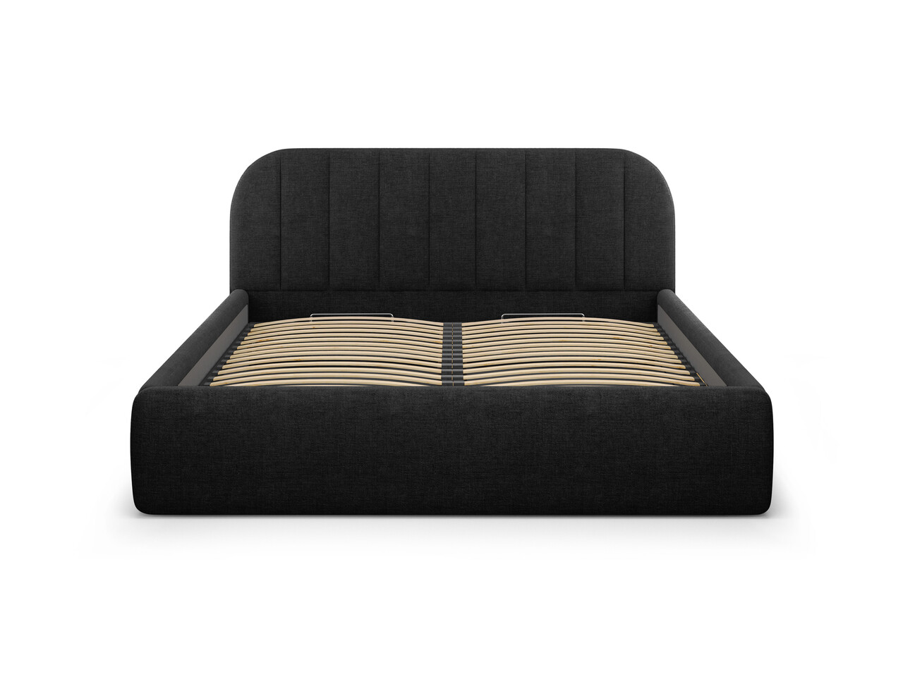 Pat tapitat cu somiera rabatabila si lada depozitare 200x200 cm Windsor & Co Juno tesatura structurata negru