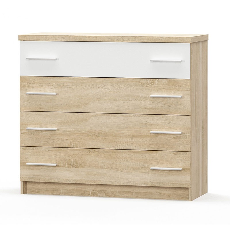 Set 4 buc. dormitor cadru pat si noptiere + comoda Geneva Alb 166.5x203.5x85 cm