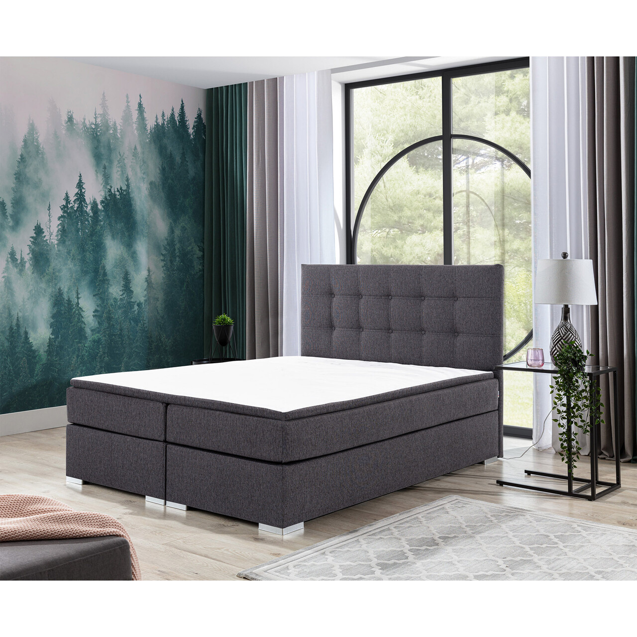 Pat boxspring tapitat 180x200 cm ELTAP 09-1.8 Inez lemn/poliester gri inchis