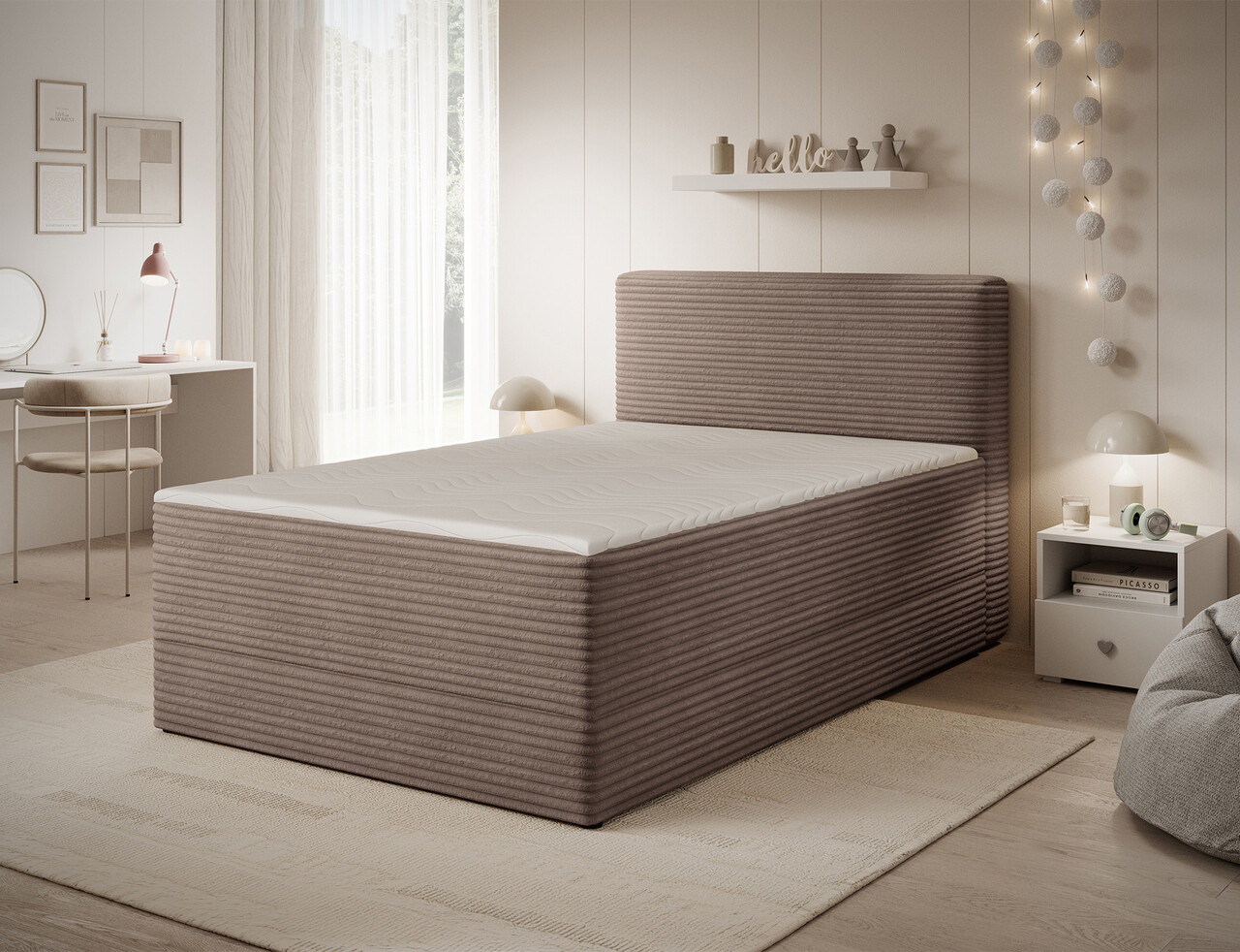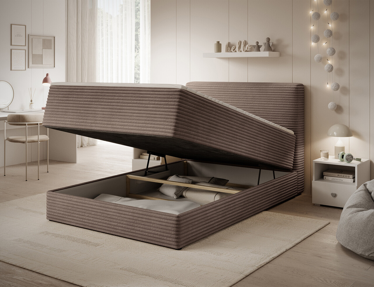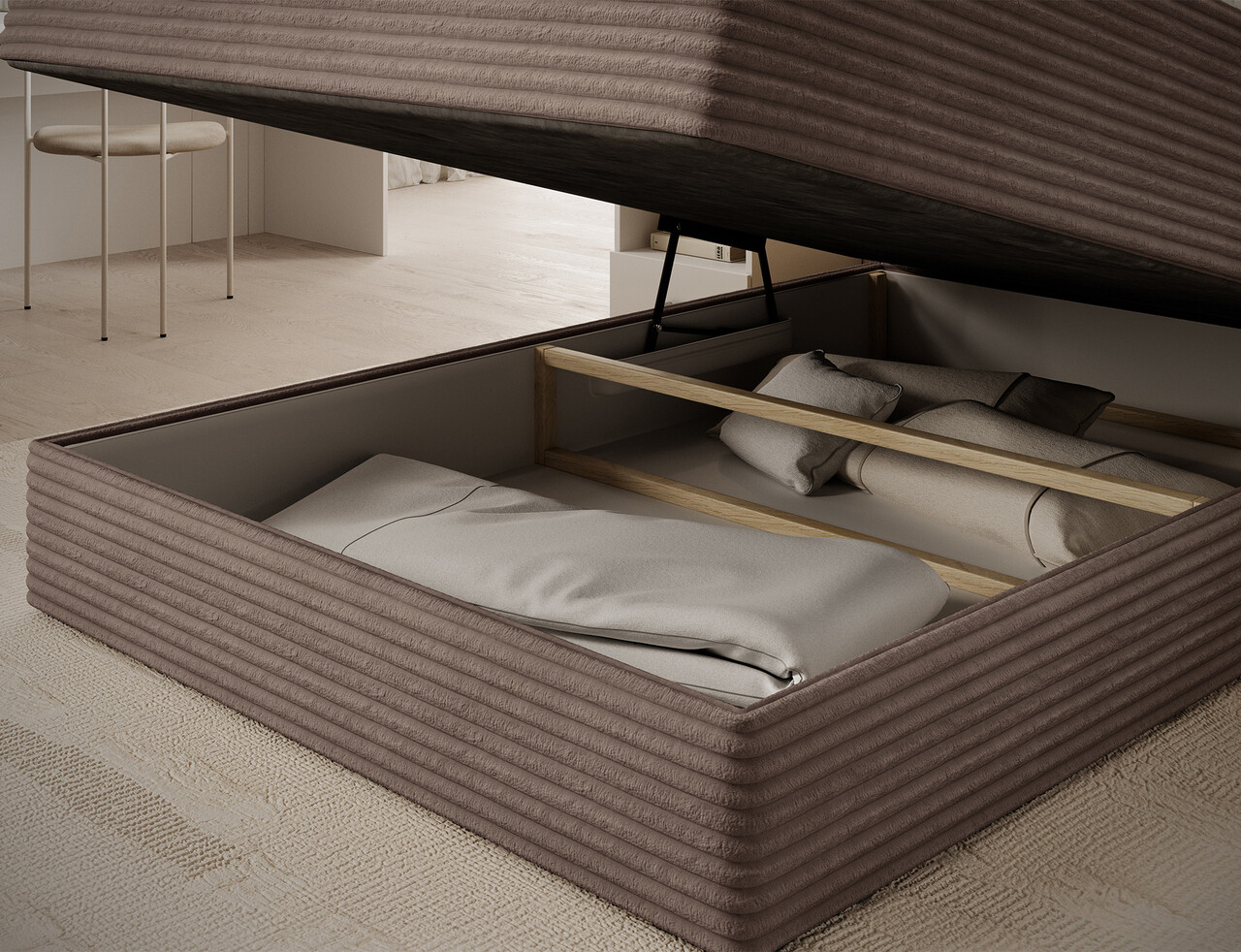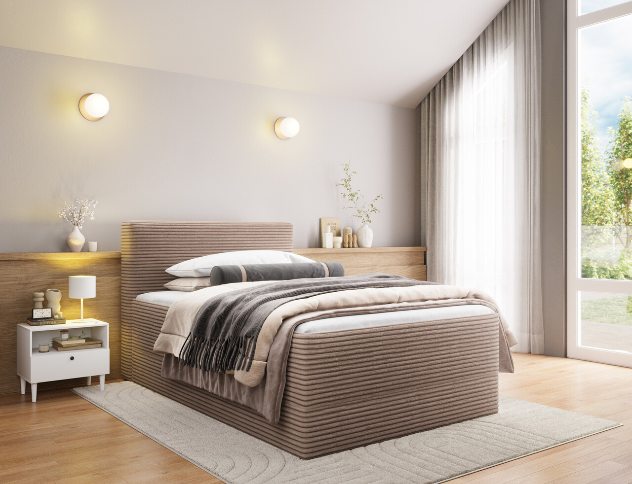 Pat continental tapitat cu lada depozitare 120x200 cm ELTAP Alamito lemn/poliester maro deschis