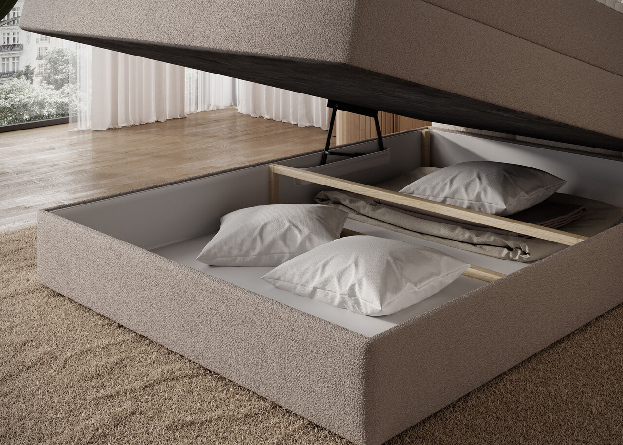Pat continental tapitat cu lada depozitare 120x200 cm ELTAP Kasped lemn/poliester bej