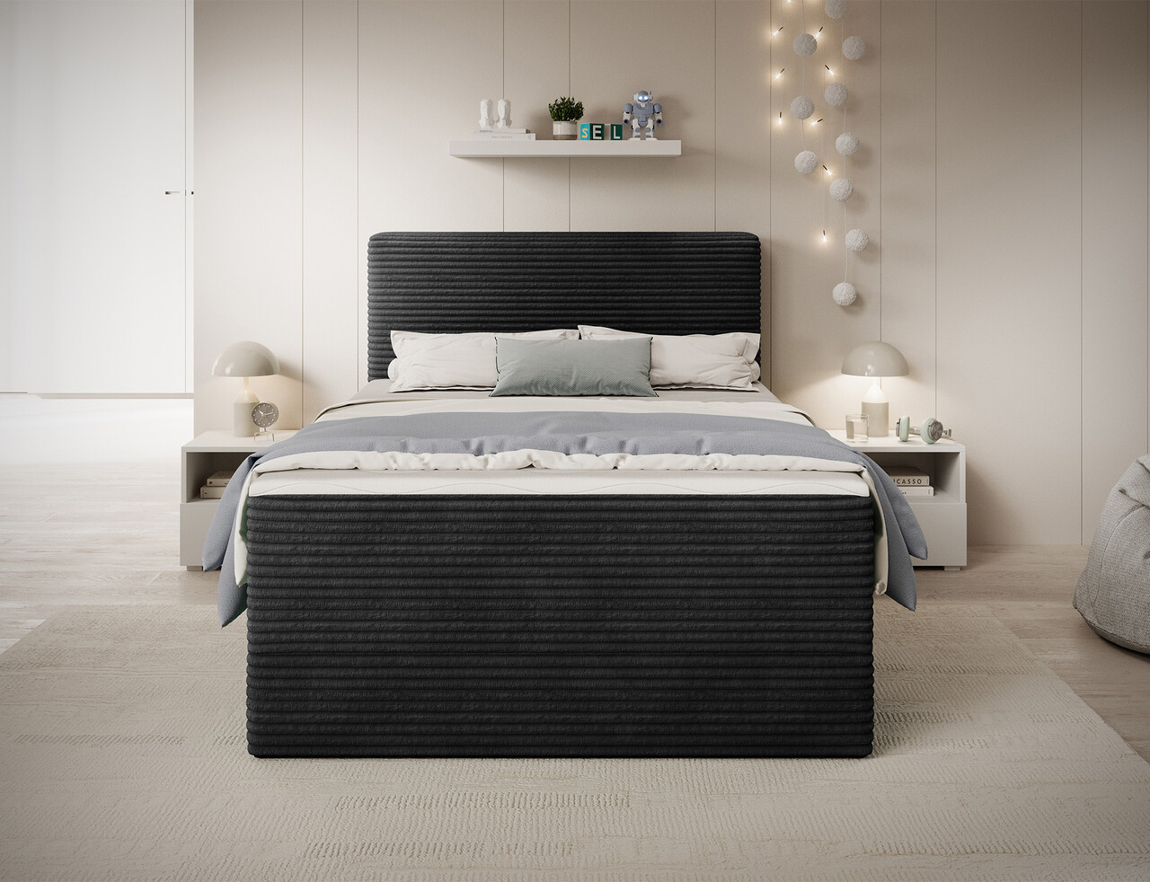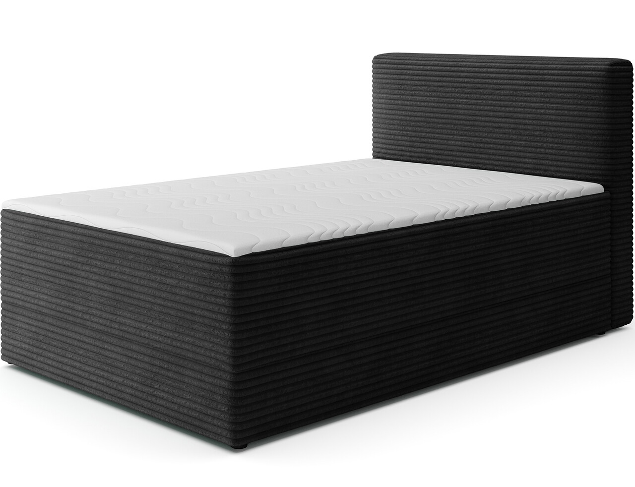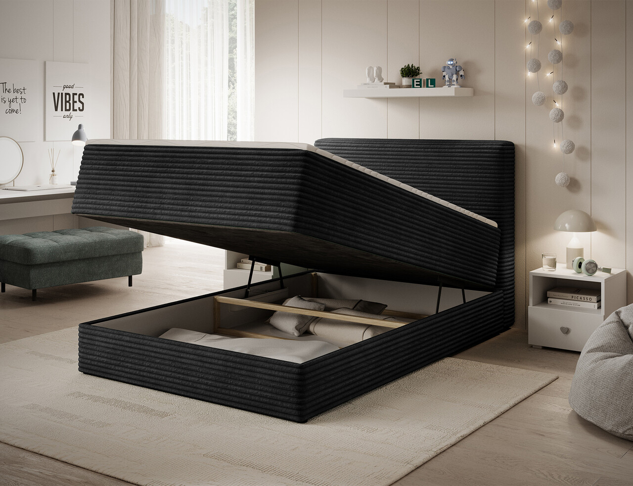 Pat continental tapitat cu lada depozitare 140x200 cm ELTAP Alamito lemn/poliester negru