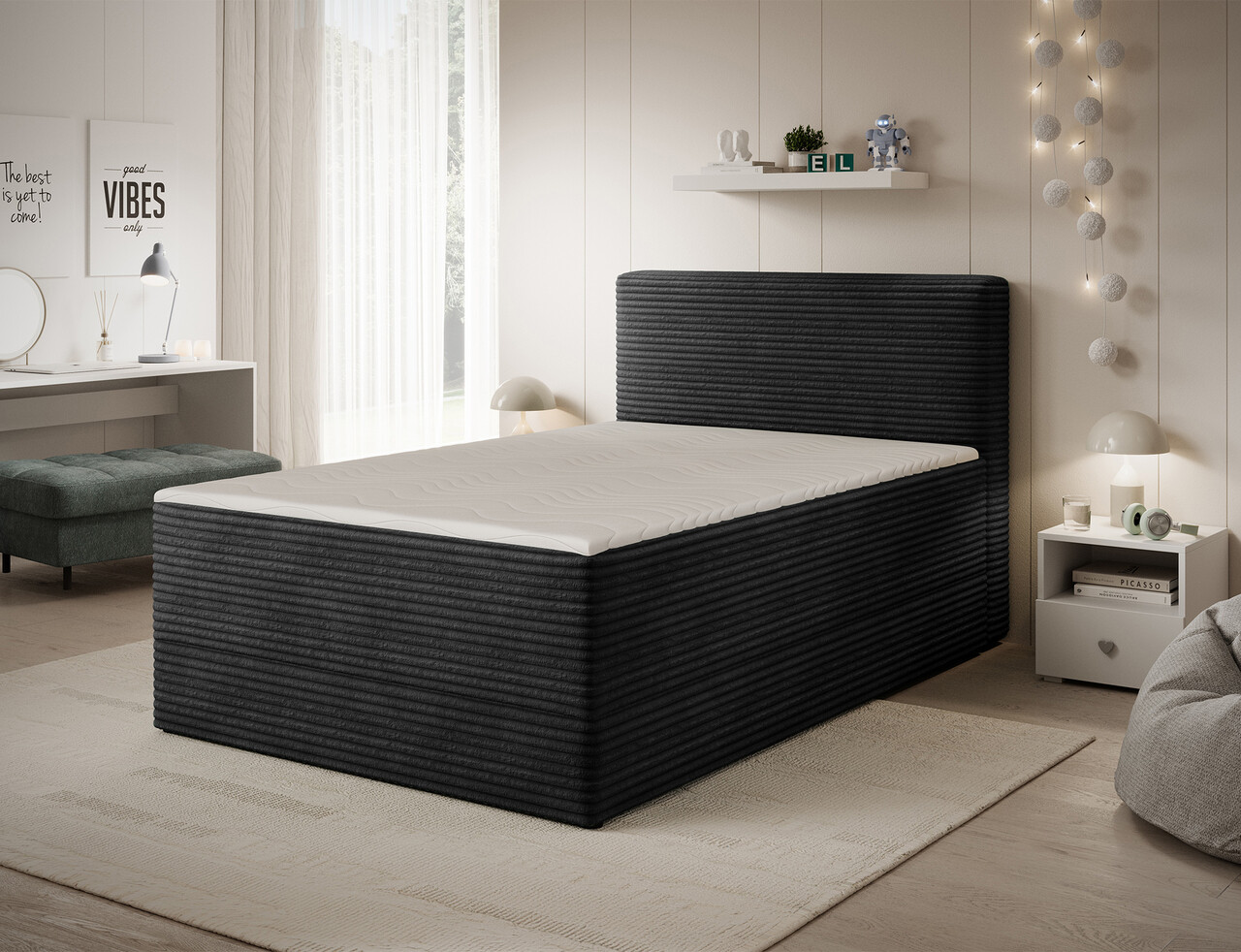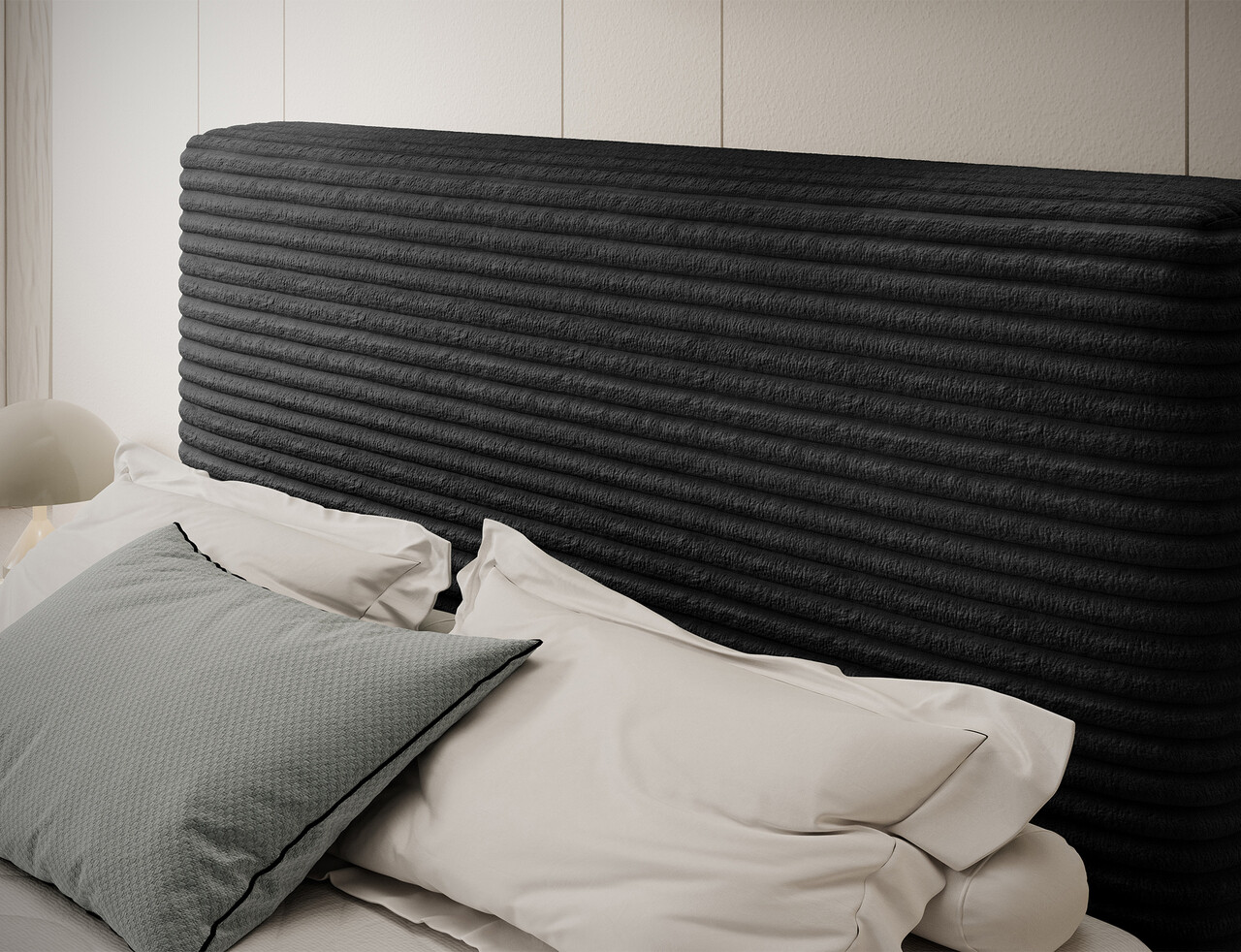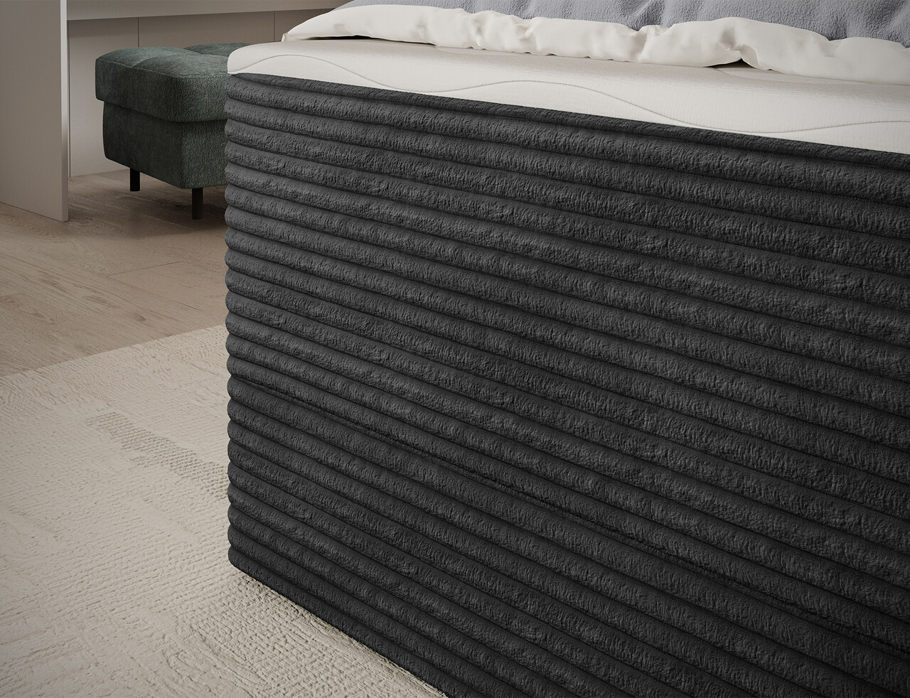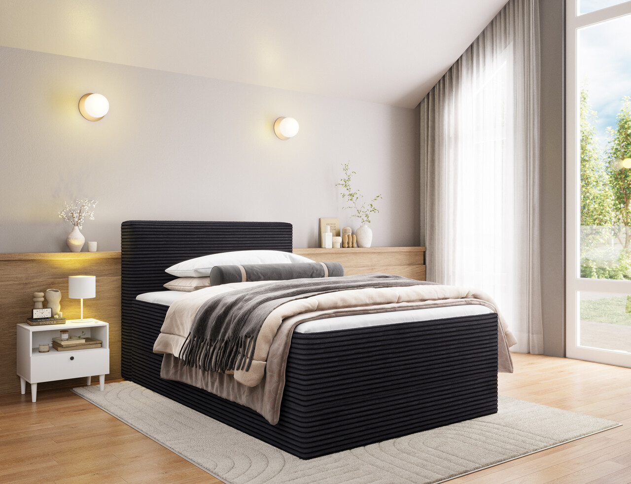 Pat continental tapitat cu lada depozitare 140x200 cm ELTAP Alamito lemn/poliester negru