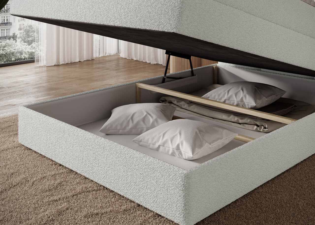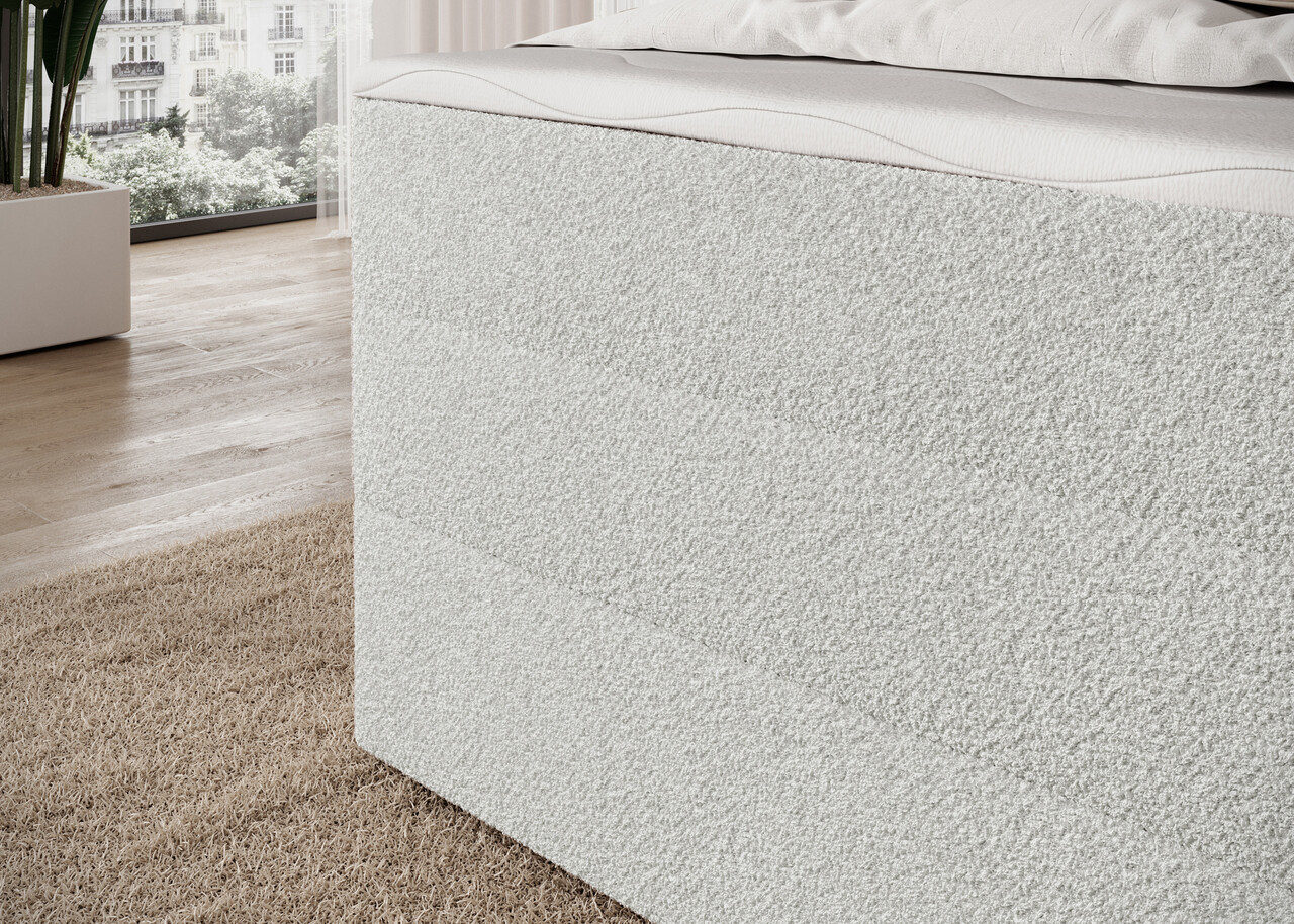 Pat continental tapitat cu lada depozitare 140x200 cm ELTAP Kasped lemn/poliester alb