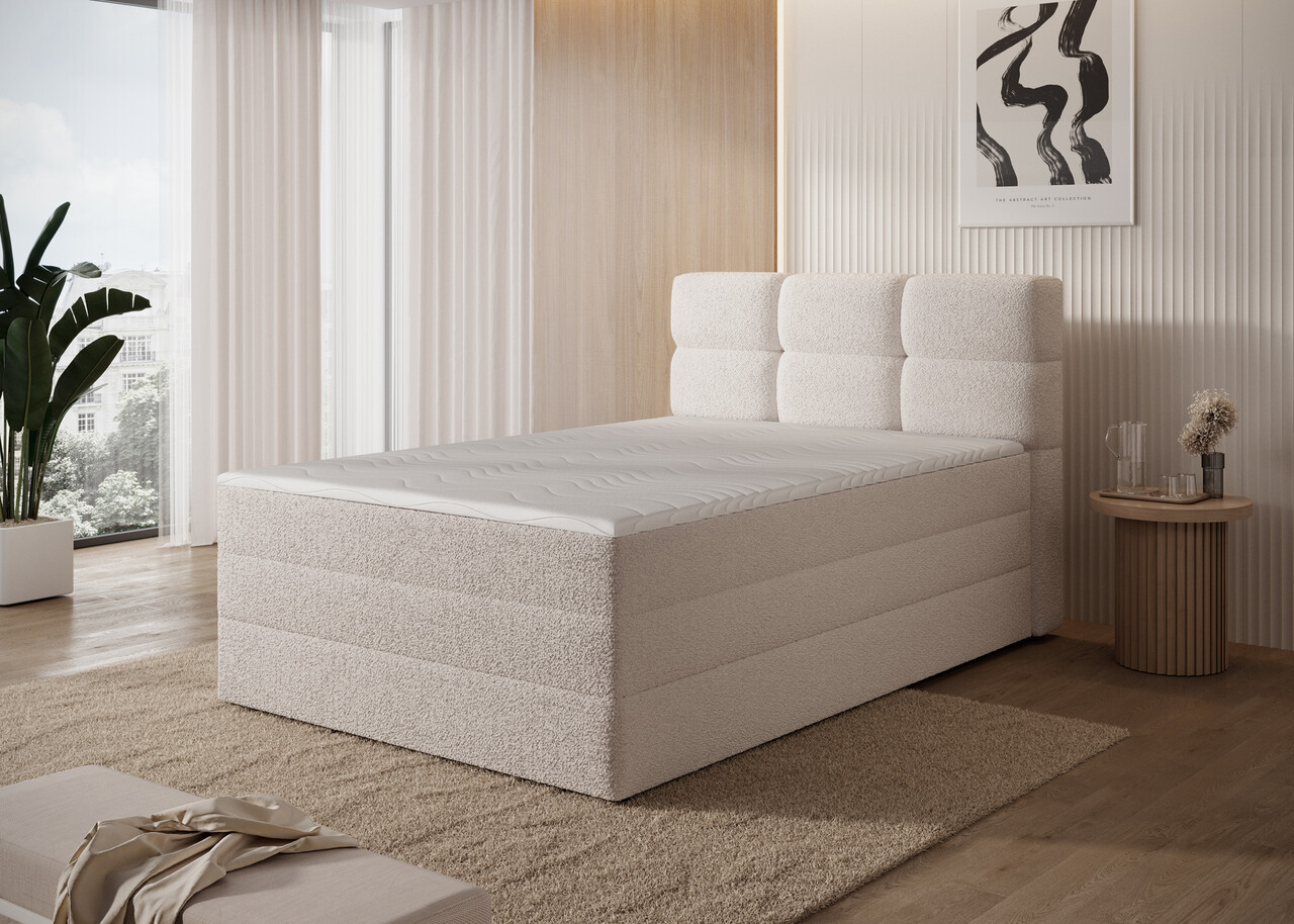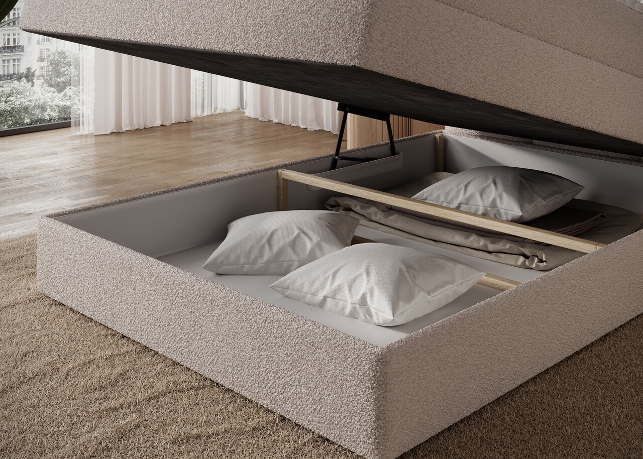 Pat continental tapitat cu lada depozitare 140x200 cm ELTAP Kasped lemn/poliester bej deschis