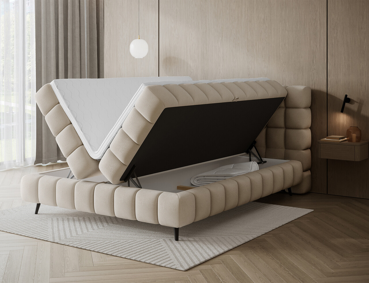 Pat continental tapitat cu lada depozitare 160x200 cm ELTAP Sabeno lemn/poliester bej