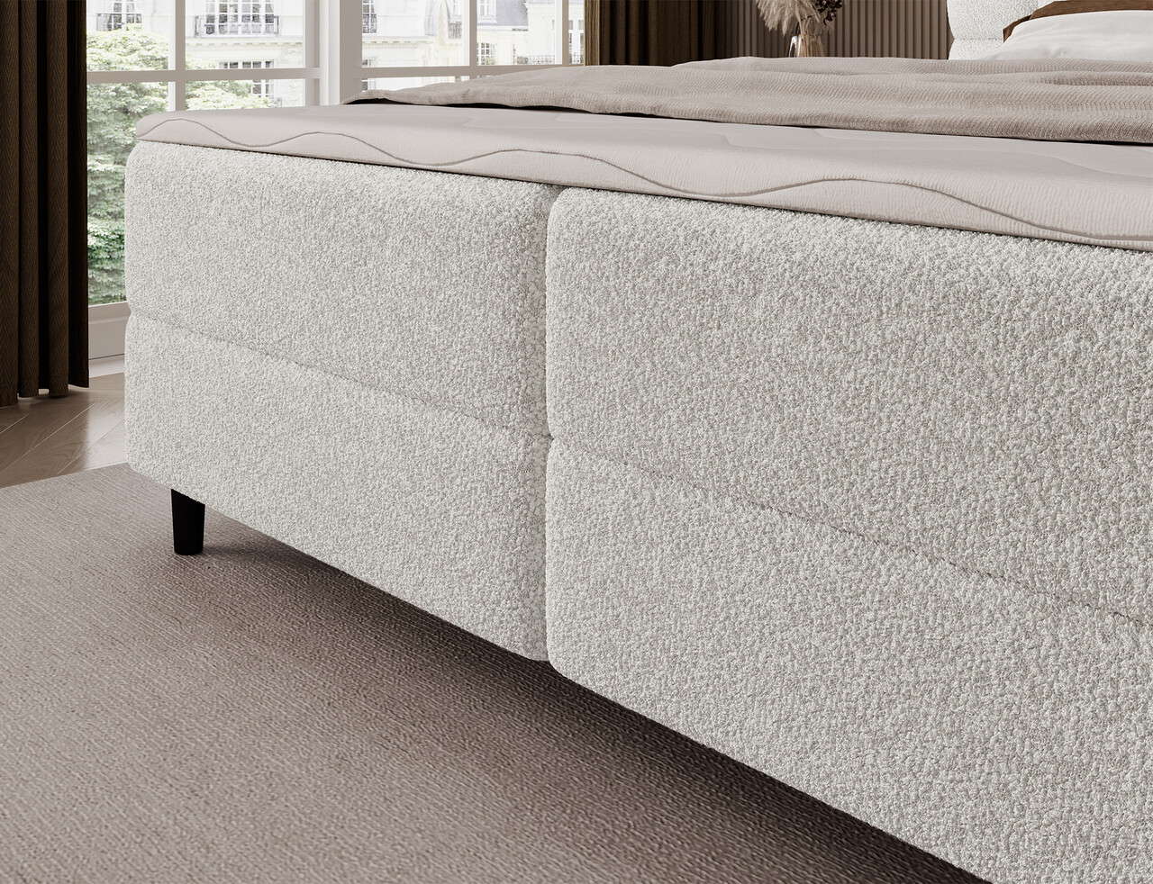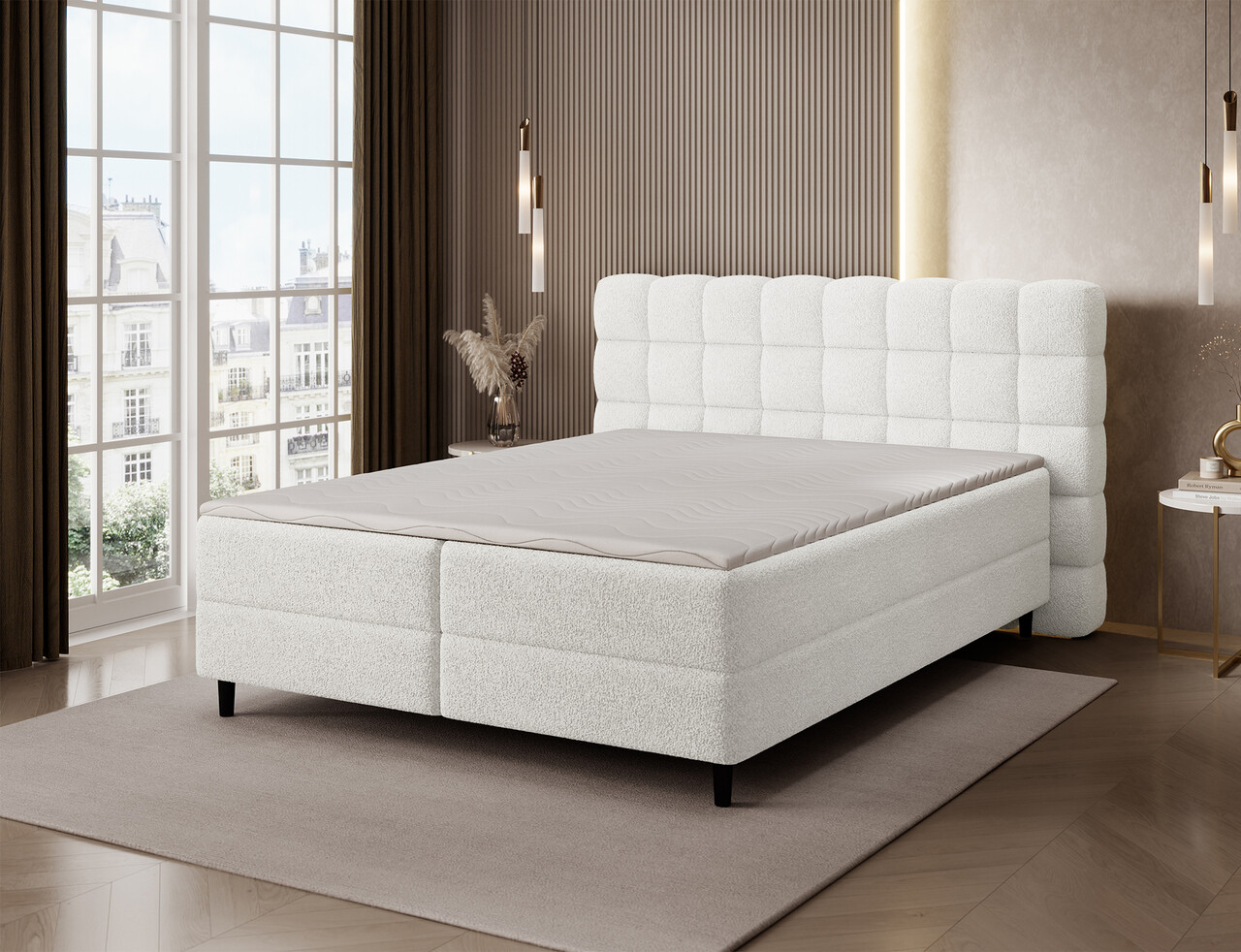 Pat continental tapitat cu lada depozitare 180x200 cm ELTAP Camma lemn/poliester alb