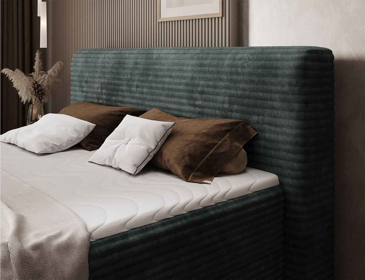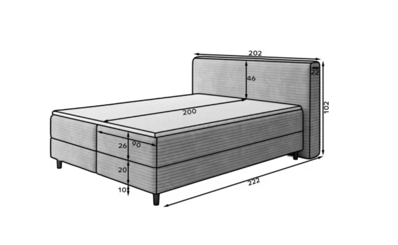 Patul continental Cortiko este o alegere eleganta si confortabila pentru iubitorii stilului modern. Disponibil in trei variante de dimensiuni: 140x200 cm, 160x200 cm si 180x200 cm, permite ajustarea perfecta a latimii – 162 cm, 182 cm sau 202 cm. Inaltimea totala a patului este de 102 cm, iar adancimea de 222 cm, oferind o structura stabila si echilibrata. Combinatia dintre arcurile Bonell si spuma T2540 asigura un suport excelent pentru corp si un confort ridicat in timpul somnului. Modelul Cortiko este echipat cu un compartiment practic pentru depozitarea lenjeriei care ajuta la mentinerea ordinii si la utilizarea eficienta a spatiului din dormitor. Picioarele negre din lemn completeaza designul, adaugand eleganta si lejeritate. Cu un design modern, patul Cortiko se potriveste perfect atat in interioare minimaliste, cat si in amenajari mai expresive, devenind un element stilat si functional al oricarui dormitor.Compozitie materialMaterial tapiterie: 100% poliester (tesatura primara Modullo 35).Material cadru: lemn de pinUmplutura sezut: spuma T2540, arcuri BonellGrosime topper: 4 cmUmplutura spatar: spuma T2130Picioare din lemn de culoare neagra.Informatii si dimensiuni specificeInaltime sezut: 56 cmInaltime picioare: 10 cmGreutatea maxima suportata: 260 kgCompartiment depozitare: 2Dimensiuni compartiment depozitare: 182x86x15 cmSuprafata de dormit: 180x200 cmProdusul necesita asamblare.