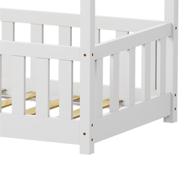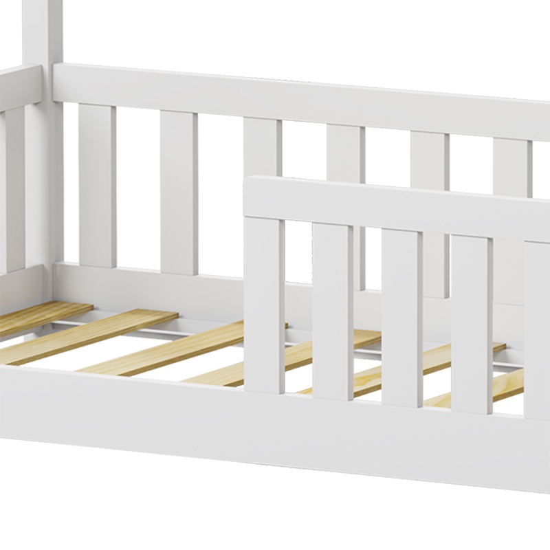 Patul pentru copii Bambie de la Pako World oferă siguranță, confort și un design modern, ideal pentru camera micuțului tău. Realizat din lemn de pin durabil și plywood rezistent, acest pat în formă de casă se integrează perfect în orice decor. Măsurând 70x140 cm, are o capacitate de până la 120 kg, asigurând stabilitate și siguranță. Designul său joasă facilitează accesul copilului, încurajând independența. Cu o greutate de 15,8 kg, se livrează demontat, împreună cu instrucțiuni de asamblare. Transformă camera micuțului într-un loc plin de magie și confort!