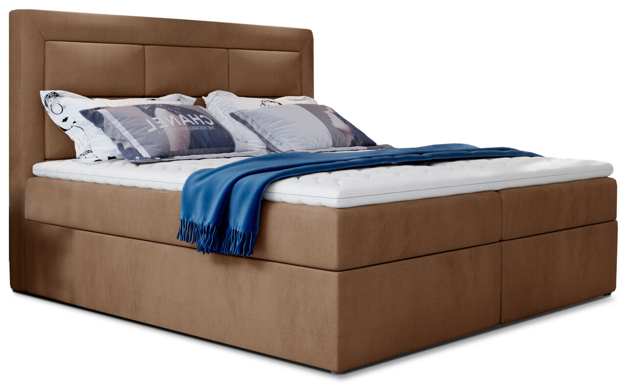 Pat tapitat cu lada depozitare 140x200 cm ELTAP VIV-10-1.4 Vivre lemn/poliester maro deschis
