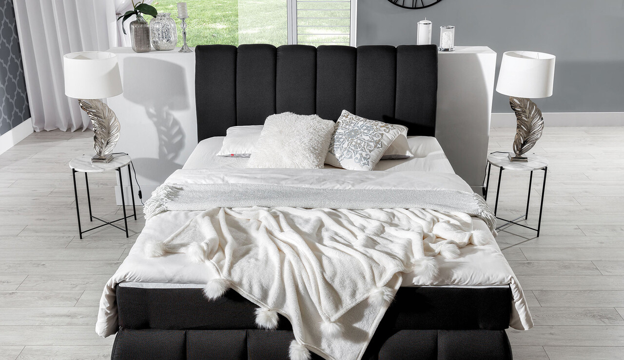 Vincenzo este un pat spatios, extraordinar si original care se distinge prin moliciune exceptionala si design neobisnuit. Aspectul lui Vincenzo este influentat atat de cuferele din jurul patului, cat si de tablia echipata cu spuma suplimentara care este decorata cu matlasare eleganta, longitudinala. Efectul original a fost, de asemenea, subliniat datorita tapiteriei disponibile in mai multe culori. Patul spatios Vincenzo cu o zona de dormit de 140/ 160/ 180 x 200 cm este locul perfect pentru a va relaxa in orice moment al zilei sau al noptii. Avantajele suplimentare ale acestui model includ saltea Bonell cu o inaltime de 20 cm, echipata cu straturi suplimentare - de sus si de jos, realizate din spuma moale si flexibila T25 si un topper cusut cu o grosime de 4 cm. Un mecanism cu arcuri faciliteaza accesul la spatiul de depozitare a lenjeriei de pat care incape in cutia patului. Vincenzo - o piesa de mobilier in stil clasic modern - satisface nevoile unui aspect modern al designului interior al unui dormitor unic. Daca sunteti in cautarea unui pat care sa incante 100% si sa fie unic in acelasi timp - poate exista o singura alegere.Compozitie materialMaterial tapiterie: 100% poliester (tesatura primara Sawana 14).Material cadru: lemn de pinUmplutura sezut: spuma-T25Picioare din plastic de culoare neagra.Informatii si dimensiuni specificeInaltime sezut: 64 cmInaltime picioare: 1.5 cmGreutatea maxima suportata: 240 kgCompartiment depozitare: 2Suprafata de dormit: 160x200 cmProdusul necesita asamblare, asamblat partial.