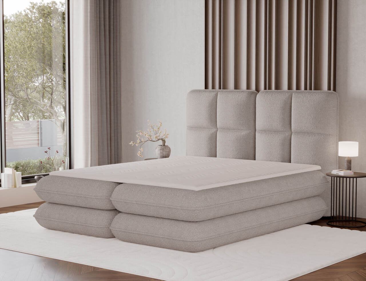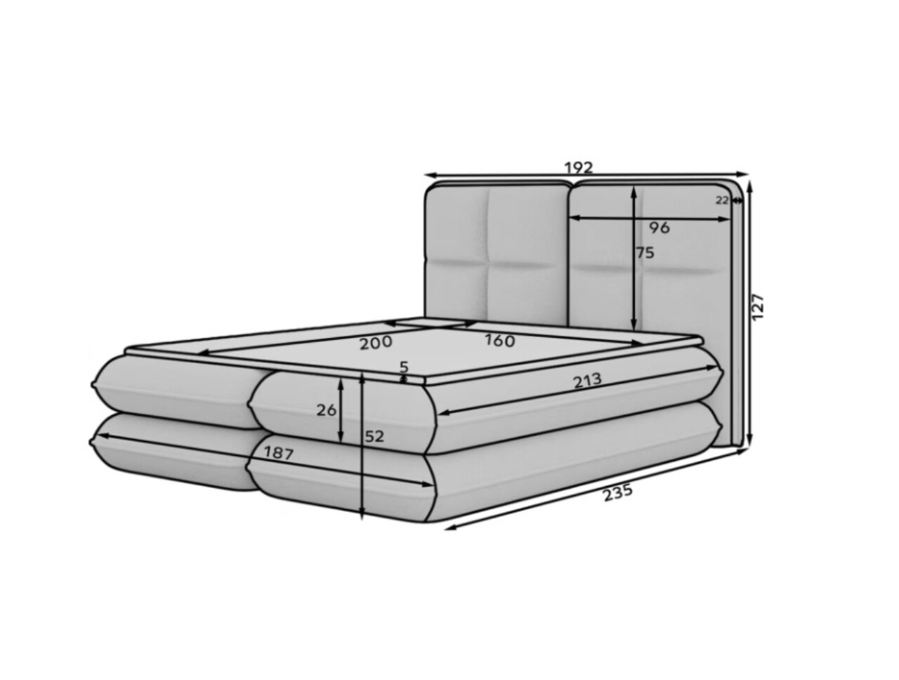 Patul Tonila este un pat tapitat modern si functional care imbina confortul somnului cu solutii practice pentru dormitor, fiind ideal atat pentru amenajari moderne, cat si clasice. Constructia solida, cu o inaltime de 127 cm si o lungime de 235 cm, asigura stabilitate si un sprijin confortabil, iar umplutura utilizata: spuma T2130 (lada de depozitare), arcuri bonell si spuma T2540 cu grosimea de 2.5 cm garanteaza sustinerea corecta a corpului si un nivel ridicat de confort in utilizarea zilnica. Patul este dotat cu un spatiu practic de depozitare pentru lenjerie care faciliteaza organizarea si mentinerea ordinii in dormitor, iar aspectul este completat de picioare de mobilier negre, ce confera structurii un caracter modern si aerisit. Modelul Tonila este disponibil in trei dimensiuni populare: 140x200 cm, 160x200 cm si 180x200 cm, permitand adaptarea usoara la dimensiunea incaperii si la nevoile individuale, oferind un pat confortabil care combina estetica, durabilitatea si functionalitatea.Compozitie materialMaterial tapiterie: 100% poliester (tesatura primara Royal 18).Material cadru: lemn de pinUmplutura sezut: arcuri Bonell si spuma T2540Umplutura cadru: spuma T2130Grosime topper: 5 cmUmplutura spatar: spuma T2130Picioare din plastic de culoare neagra.Informatii si dimensiuni specificeInaltime sezut: 52 cmInaltime picioare: 2.5 cmGreutatea maxima suportata: 240 kgCompartiment depozitare: 2Dimensiuni compartiment depozitare: 196x76x23 cmSuprafata de dormit: 160x200 cmProdusul necesita asamblare.