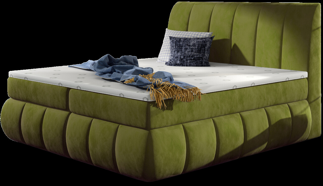 Pat tapitat cu lada depozitare 180x200 cm ELTAP BVI-15-1.8 Vincenzo lemn/poliester verde olive