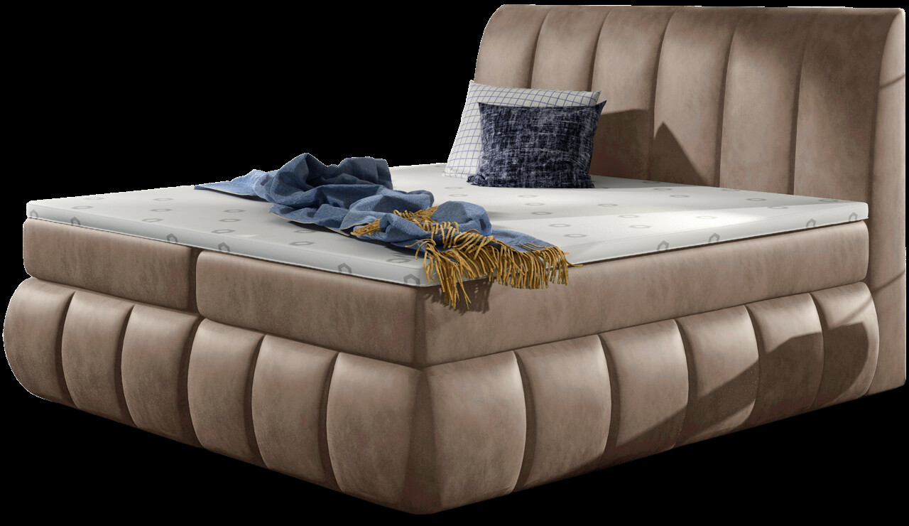 Pat tapitat cu lada depozitare 180x200 cm ELTAP BVI-27-1.8 Vincenzo lemn/poliester maro deschis