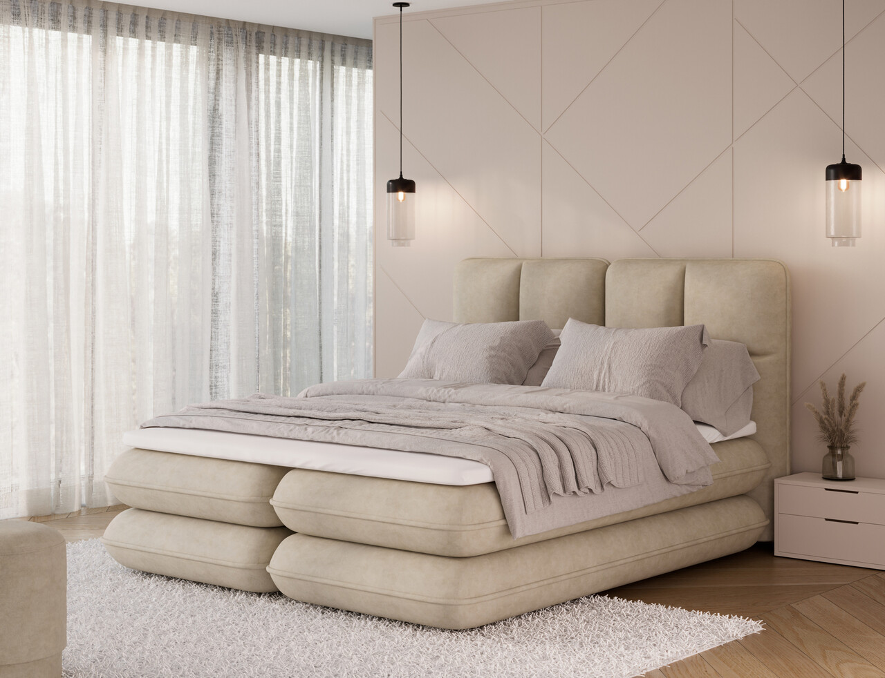 Patul Tonila este un pat tapitat modern si functional care imbina confortul somnului cu solutii practice pentru dormitor, fiind ideal atat pentru amenajari moderne, cat si clasice. Constructia solida, cu o inaltime de 127 cm si o lungime de 235 cm, asigura stabilitate si un sprijin confortabil, iar umplutura utilizata: spuma T2130 (lada de depozitare), arcuri bonell si spuma T2540 cu grosimea de 2.5 cm garanteaza sustinerea corecta a corpului si un nivel ridicat de confort in utilizarea zilnica. Patul este dotat cu un spatiu practic de depozitare pentru lenjerie care faciliteaza organizarea si mentinerea ordinii in dormitor, iar aspectul este completat de picioare de mobilier negre, ce confera structurii un caracter modern si aerisit. Modelul Tonila este disponibil in trei dimensiuni populare: 140x200 cm, 160x200 cm si 180x200 cm, permitand adaptarea usoara la dimensiunea incaperii si la nevoile individuale, oferind un pat confortabil care combina estetica, durabilitatea si functionalitatea.Compozitie materialMaterial tapiterie: 100% poliester (tesatura primara Aura 18).Material cadru: lemn de pinUmplutura sezut: arcuri Bonell si spuma T2540Umplutura cadru: spuma T2130Grosime topper: 5 cmUmplutura spatar: spuma T2130Picioare din plastic de culoare neagra.Informatii si dimensiuni specificeInaltime sezut: 52 cmInaltime picioare: 2.5 cmGreutatea maxima suportata: 260 kgCompartiment depozitare: 2Dimensiuni compartiment depozitare: 196x86x23 cmSuprafata de dormit: 180x200 cmProdusul necesita asamblare.