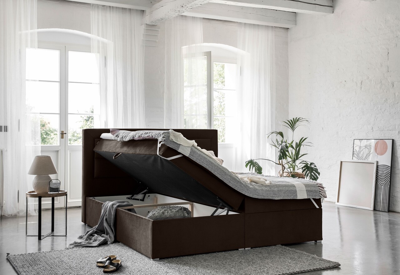 Pat tapitat cu lada depozitare 180x200 cm ELTAP VIV-11-1.8 Vivre lemn/poliester maro inchis