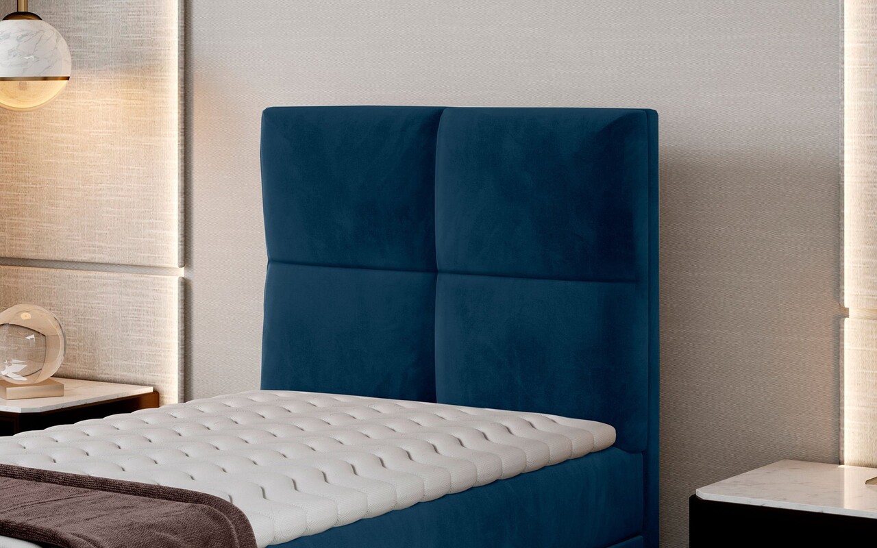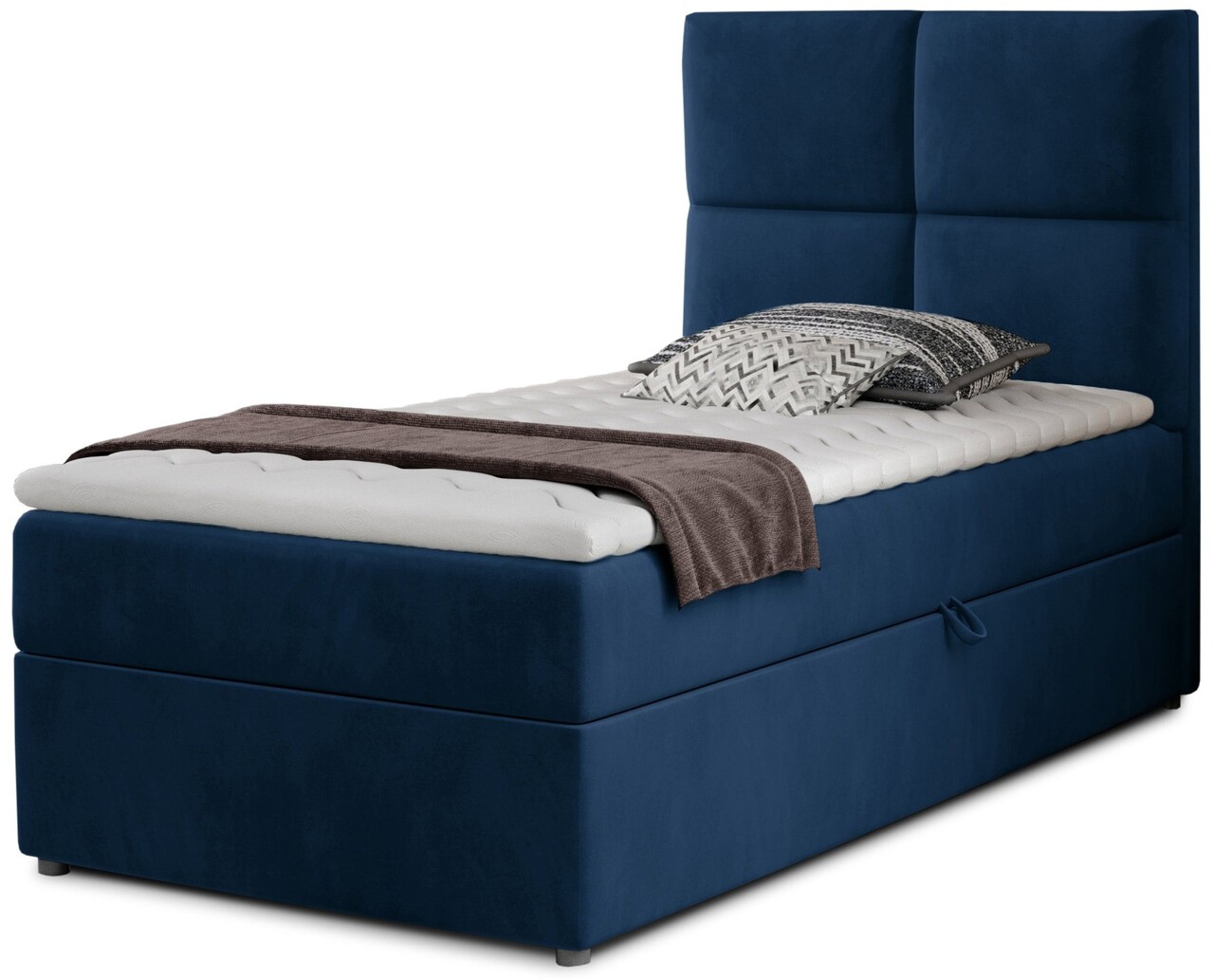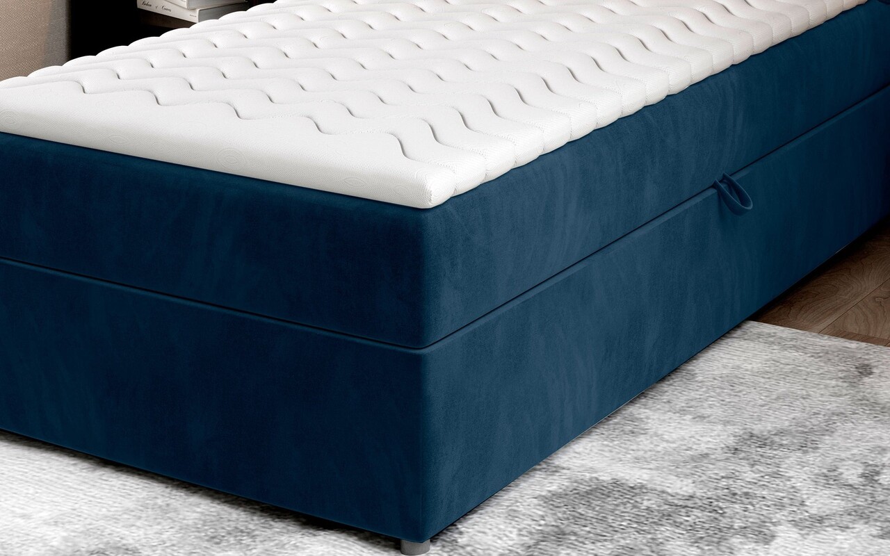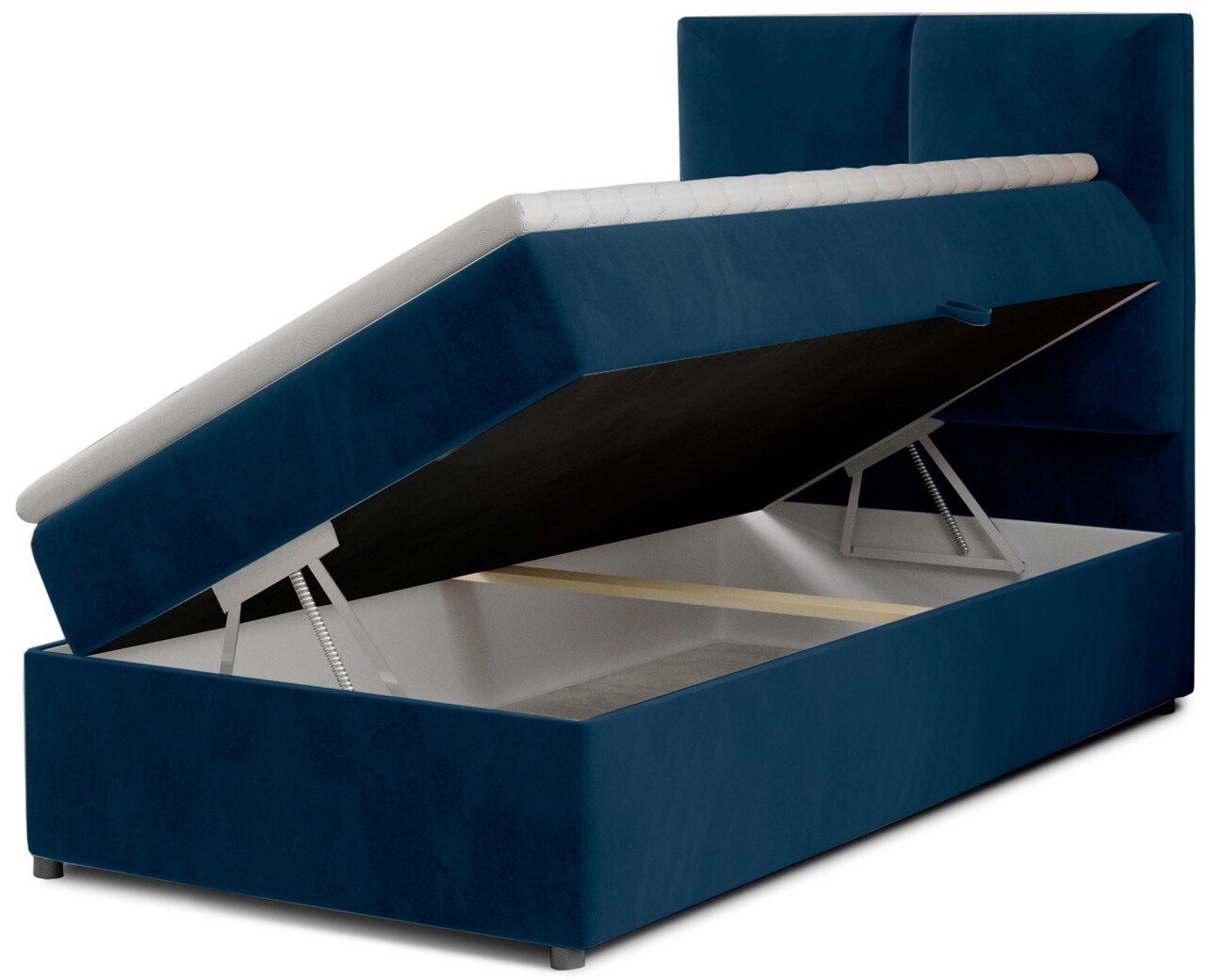 Pat tapitat cu lada depozitare 90x200 cm ELTAP Riv-06 Rivia lemn/poliester albastru inchis