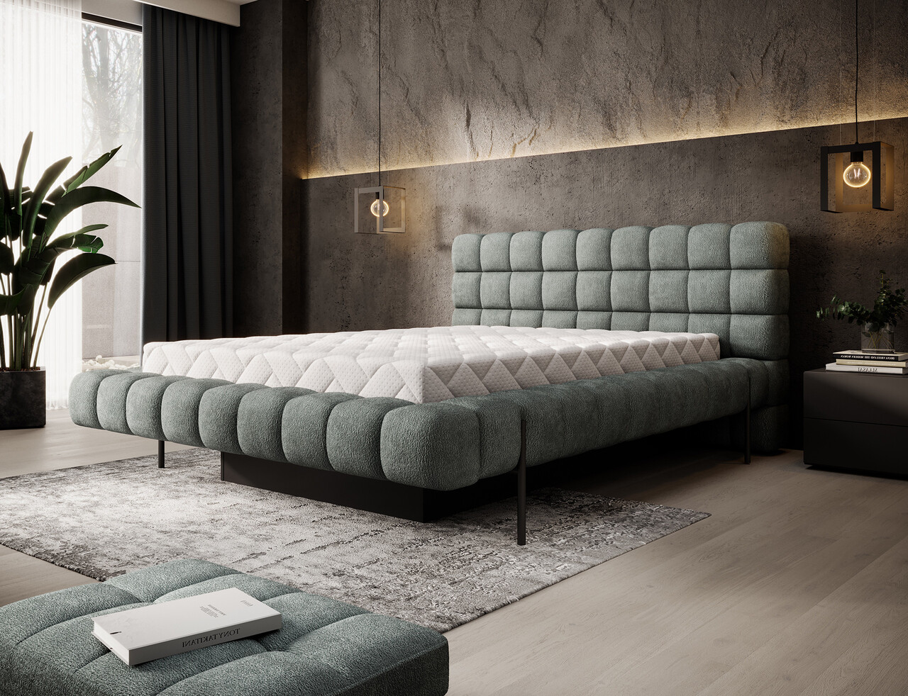 Patul Magentta reprezinta o combinatie de design modern, functionalitate si confort deosebit. Datorita spatarului tapitat, patul are un aspect extrem de elegant si adauga o nota de caldura oricarui dormitor. Structura solida si spatarul umplut cu spuma T2130 ofera un suport excelent si confort atat pentru somn, cat si pentru relaxare. Modelul este disponibil in trei dimensiuni: 140 cm, 160 cm si 180 cm, permitand adaptarea acestuia la dimensiunea camerei si la preferintele individuale. Cadrul metalic include 36 de lamele care sustin uniform salteaua, sporind durabilitatea constructiei si confortul utilizarii. Piciorul negru din metal ofera o baza solida si accentueaza caracterul minimalist si modern al patului. Un avantaj suplimentar este lada de depozitare pentru lenjerie care permite stocarea practica a pilotelor, pernelor sau altor textile, economisind spatiu in camera. Patul Magentta este alegerea ideala pentru cei care apreciaza stilul modern, confortul si solutiile functionale.Compozitie materialMaterial tapiterie: 100% poliester (tesatura primara Touch 100).Material cadru: metalUmplutura cadru: spuma T2130Umplutura spatar: spuma T2130Picioare din metal de culoare neagra.Informatii si dimensiuni specificeInaltime sezut: 44 cmInaltime picioare: 21 cmGreutatea maxima suportata: 240 kgDimensiuni lada depozitare: 177x100x29 cmSomiera rabatabila cu piston pe gazNumar lamele: 36Suprafata de dormit: 140x200 cmProdusul necesita asamblare, asamblat partial.