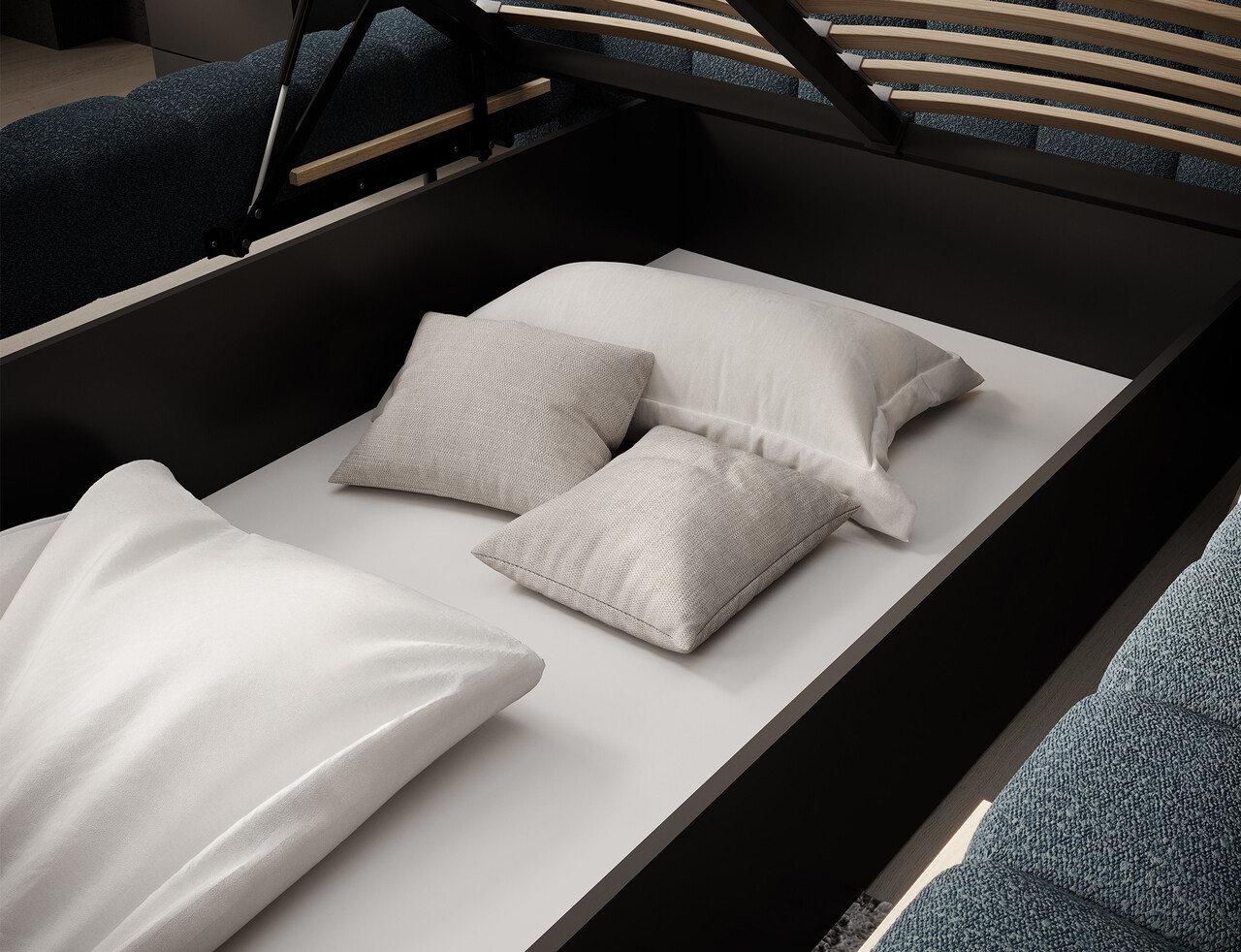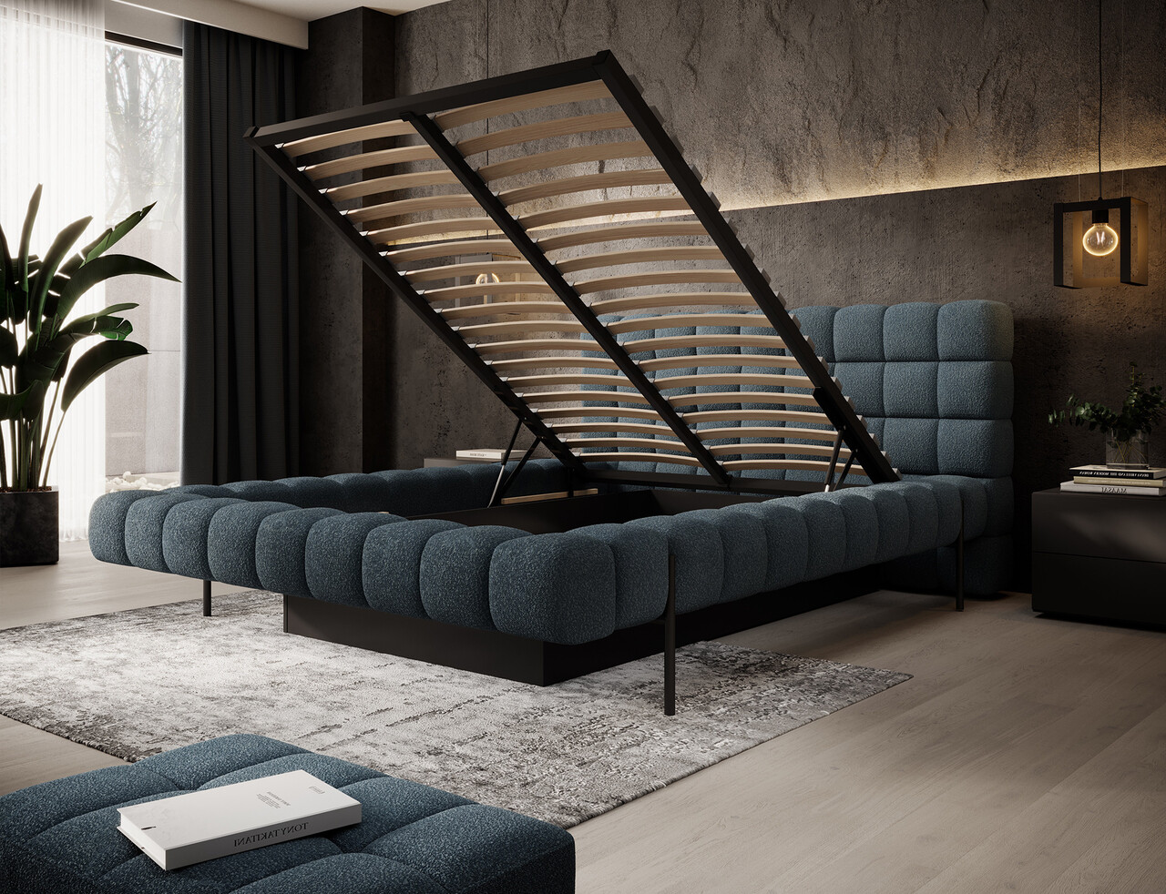 Pat tapitat cu somiera rabatabila si lada depozitare 140x200 cm ELTAP Magentta metal/poliester albastru