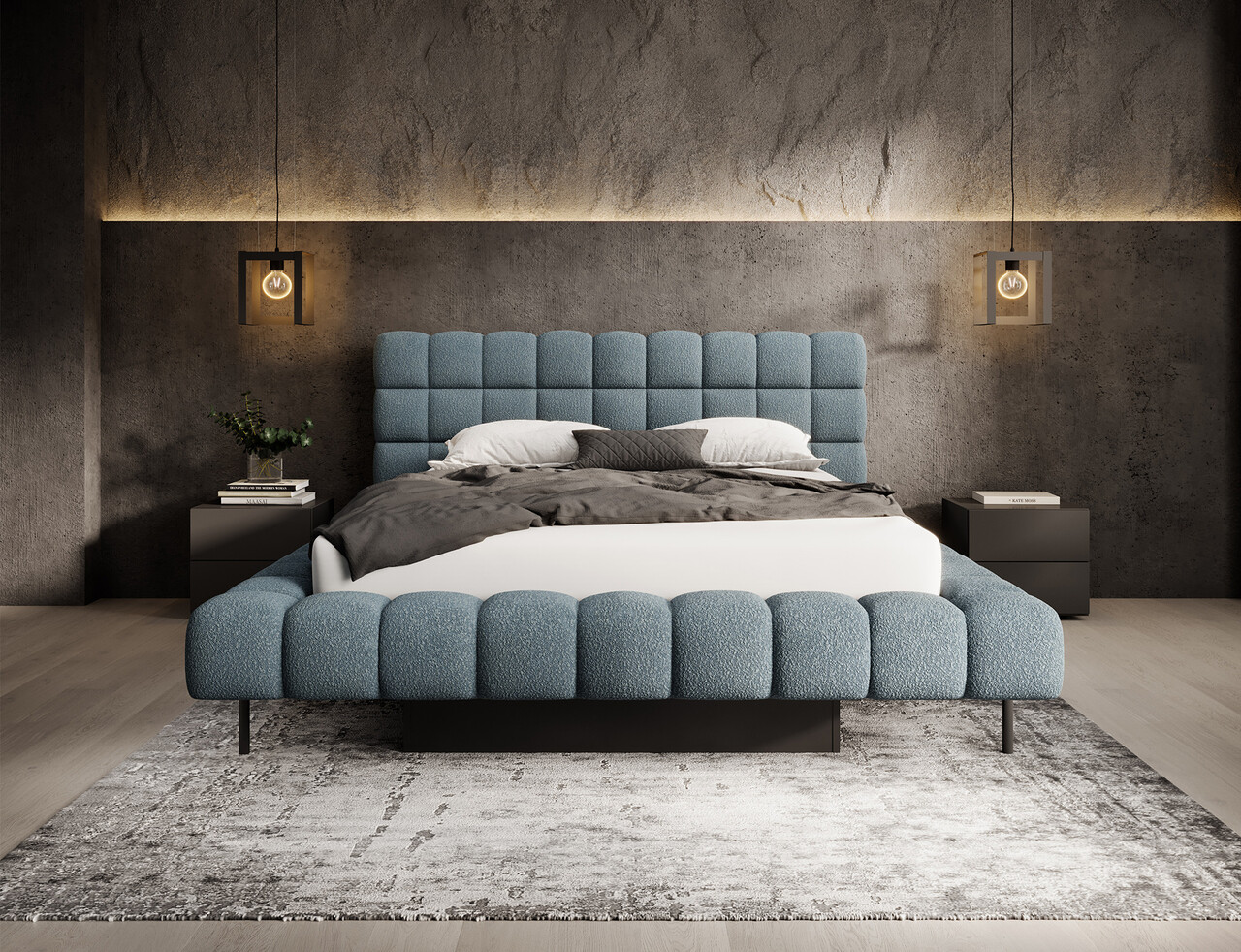 Patul Magentta reprezinta o combinatie de design modern, functionalitate si confort deosebit. Datorita spatarului tapitat, patul are un aspect extrem de elegant si adauga o nota de caldura oricarui dormitor. Structura solida si spatarul umplut cu spuma T2130 ofera un suport excelent si confort atat pentru somn, cat si pentru relaxare. Modelul este disponibil in trei dimensiuni: 140 cm, 160 cm si 180 cm, permitand adaptarea acestuia la dimensiunea camerei si la preferintele individuale. Cadrul metalic include 36 de lamele care sustin uniform salteaua, sporind durabilitatea constructiei si confortul utilizarii. Piciorul negru din metal ofera o baza solida si accentueaza caracterul minimalist si modern al patului. Un avantaj suplimentar este lada de depozitare pentru lenjerie care permite stocarea practica a pilotelor, pernelor sau altor textile, economisind spatiu in camera. Patul Magentta este alegerea ideala pentru cei care apreciaza stilul modern, confortul si solutiile functionale.Compozitie materialMaterial tapiterie: 100% poliester (tesatura primara Jaffray 40).Material cadru: metalUmplutura cadru: spuma T2130Umplutura spatar: spuma T2130Picioare din metal de culoare neagra.Informatii si dimensiuni specificeInaltime sezut: 44 cmInaltime picioare: 21 cmGreutatea maxima suportata: 240 kgDimensiuni lada depozitare: 177x100x29 cmSomiera rabatabila cu piston pe gazNumar lamele: 36Suprafata de dormit: 140x200 cmProdusul necesita asamblare, asamblat partial.