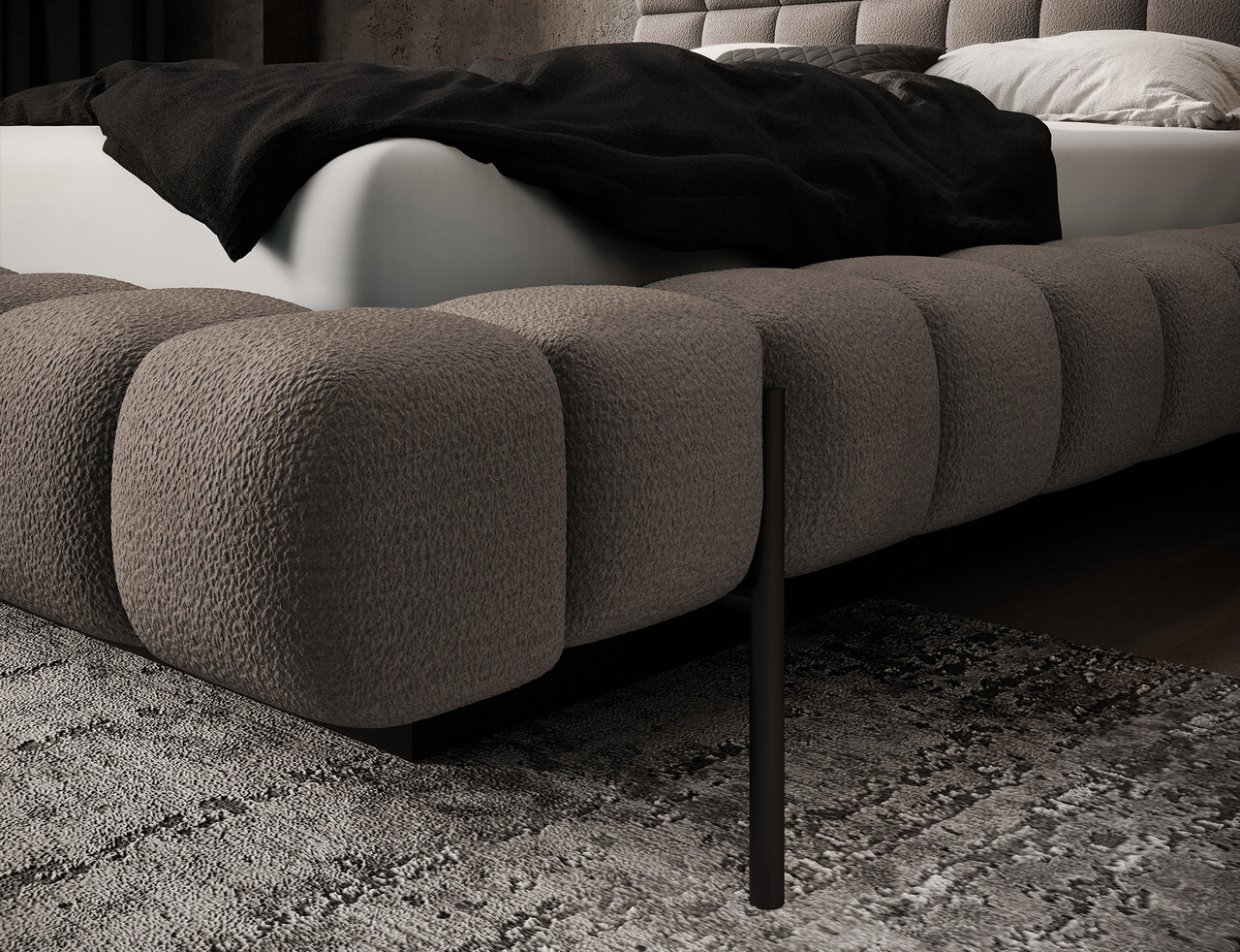 Patul Magentta reprezinta o combinatie de design modern, functionalitate si confort deosebit. Datorita spatarului tapitat, patul are un aspect extrem de elegant si adauga o nota de caldura oricarui dormitor. Structura solida si spatarul umplut cu spuma T2130 ofera un suport excelent si confort atat pentru somn, cat si pentru relaxare. Modelul este disponibil in trei dimensiuni: 140 cm, 160 cm si 180 cm, permitand adaptarea acestuia la dimensiunea camerei si la preferintele individuale. Cadrul metalic include 36 de lamele care sustin uniform salteaua, sporind durabilitatea constructiei si confortul utilizarii. Piciorul negru din metal ofera o baza solida si accentueaza caracterul minimalist si modern al patului. Un avantaj suplimentar este lada de depozitare pentru lenjerie care permite stocarea practica a pilotelor, pernelor sau altor textile, economisind spatiu in camera. Patul Magentta este alegerea ideala pentru cei care apreciaza stilul modern, confortul si solutiile functionale.Compozitie materialMaterial tapiterie: 100% poliester (tesatura primara Amore 20).Material cadru: metalUmplutura cadru: spuma T2130Umplutura spatar: spuma T2130Picioare din metal de culoare neagra.Informatii si dimensiuni specificeInaltime sezut: 44 cmInaltime picioare: 21 cmGreutatea maxima suportata: 240 kgDimensiuni lada depozitare: 177x100x29 cmSomiera rabatabila cu piston pe gazNumar lamele: 36Suprafata de dormit: 140x200 cmProdusul necesita asamblare, asamblat partial.