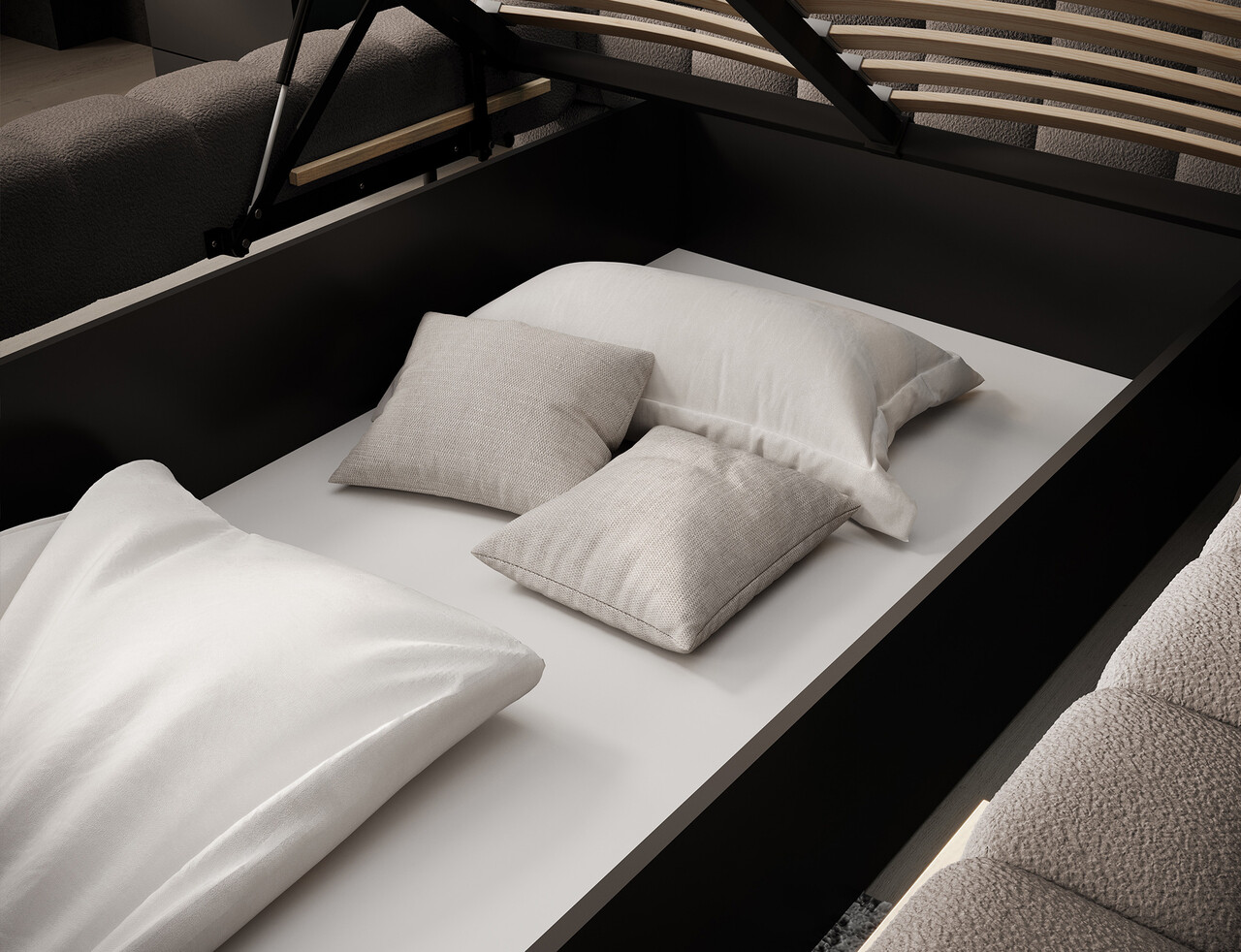 Pat tapitat cu somiera rabatabila si lada depozitare 140x200 cm ELTAP Magentta metal/poliester maro inchis