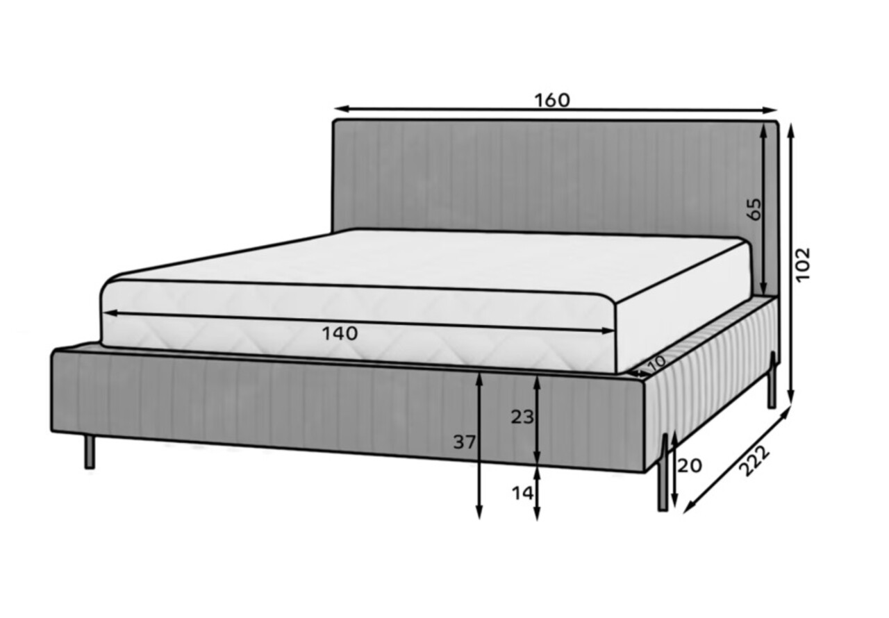 Plissa este un pat tapitat unic care captiveaza prin designul sau modern si functionalitatea sa. Are un cadru metalic solid pentru saltea si picioare metalice care asigura stabilitate si durabilitate. Patul se vinde fara saltea. Spatiul practic de depozitare de sub pat permite depozitarea comoda a lenjeriei de pat si a altor articole, fiind solutia perfecta pentru cei care apreciaza functionalitatea in dormitorul lor. Plissa nu este doar un pat, ci si un element decorativ elegant care adauga rafinament oricarui interior.Compozitie materialMaterial tapiterie: 100% poliester (tesatura primara Nube 35).Material cadru: metalUmplutura cadru: spuma T2130Umplutura spatar: spuma T2130Picioare din metal de culoare neagra.Informatii si dimensiuni specificeInaltime sezut: 37 cmInaltime picioare: 14 cmGreutatea maxima suportata: 180 kgDimensiuni lada depozitare: 140x200 cmSomiera rabatabila cu piston pe gazNumar lamele: 36Suprafata de dormit: 140x200 cmProdusul necesita asamblare, asamblat partial.