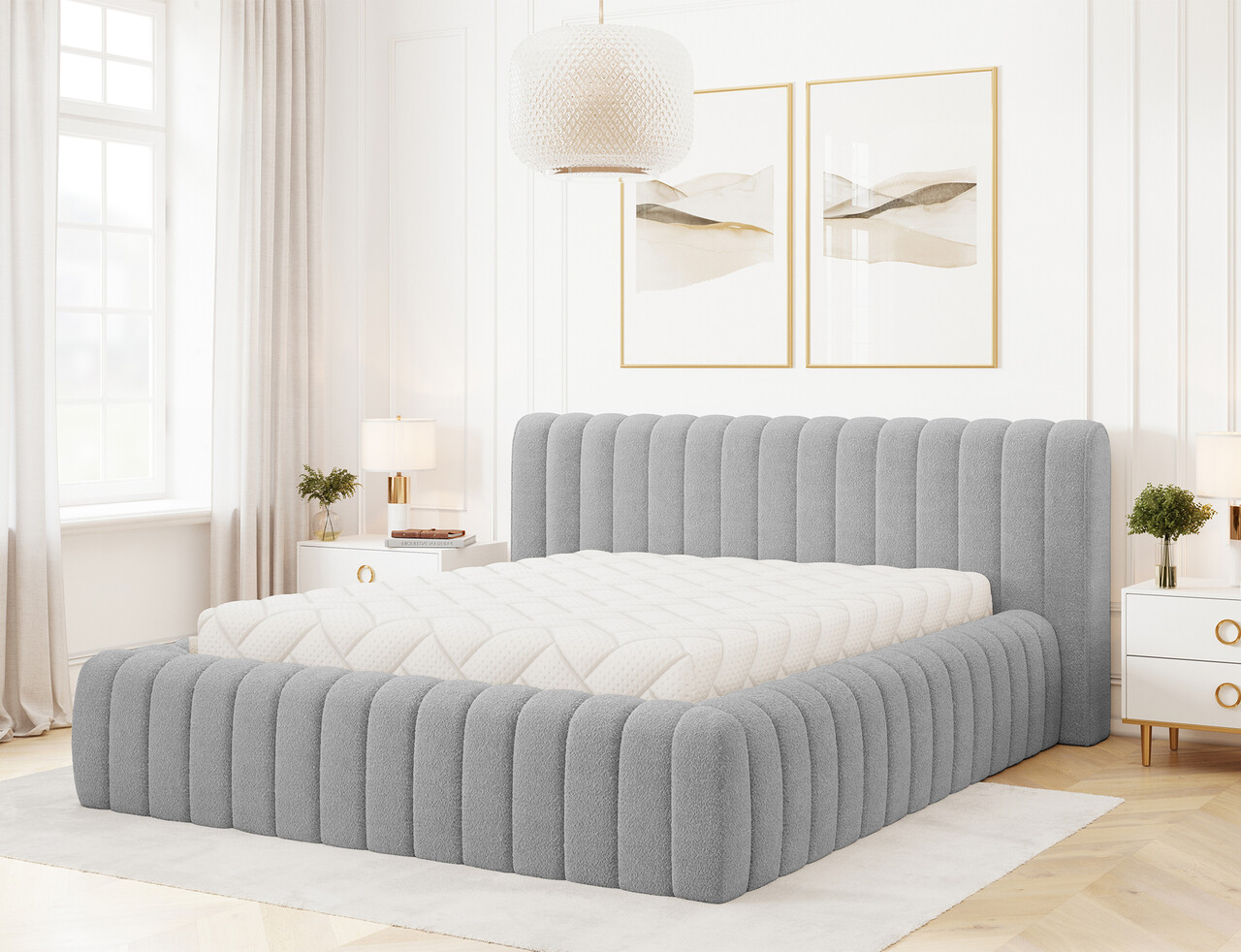 Pat tapitat cu somiera rabatabila si lada depozitare 160x200 cm ELTAP 04ROY-1.6 Carilla metal/poliester gri deschis