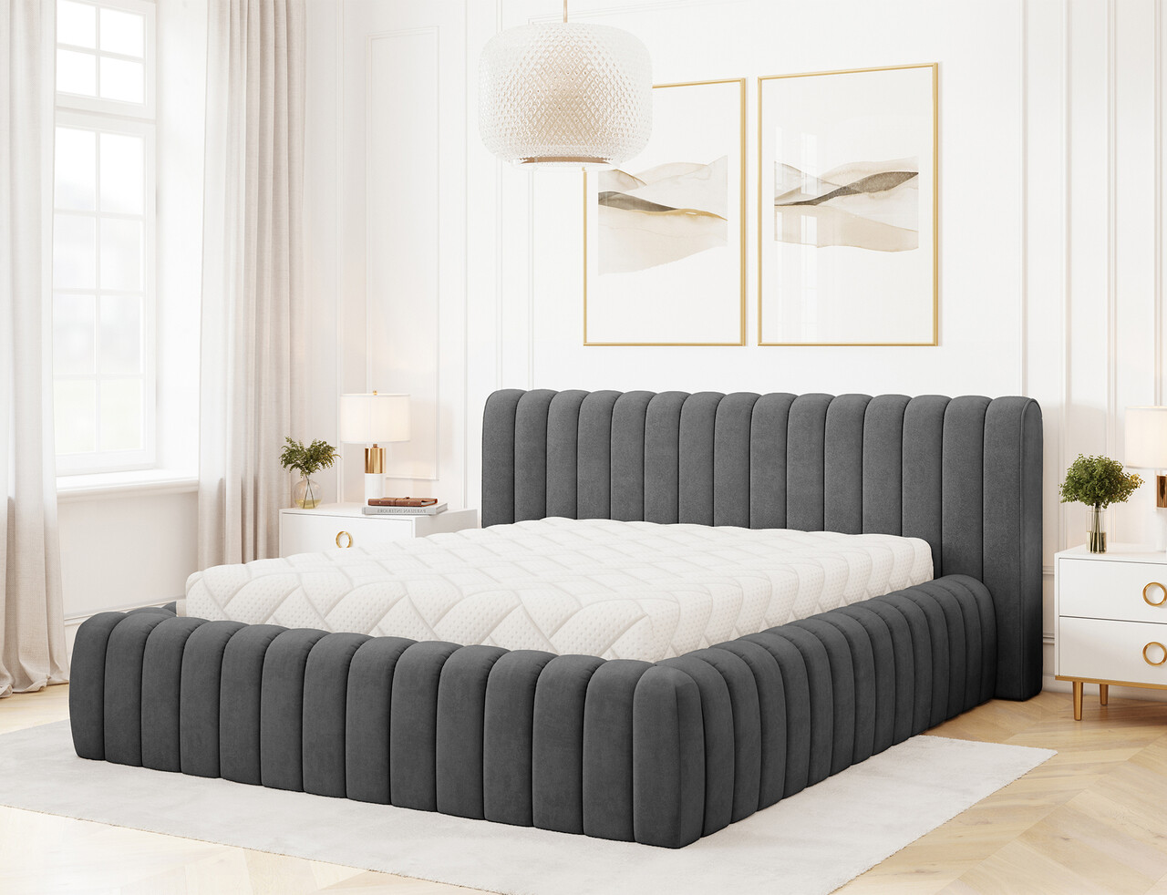 Pat tapitat cu somiera rabatabila si lada depozitare 160x200 cm ELTAP 06SO-1.6 Carilla metal/poliester gri antracit