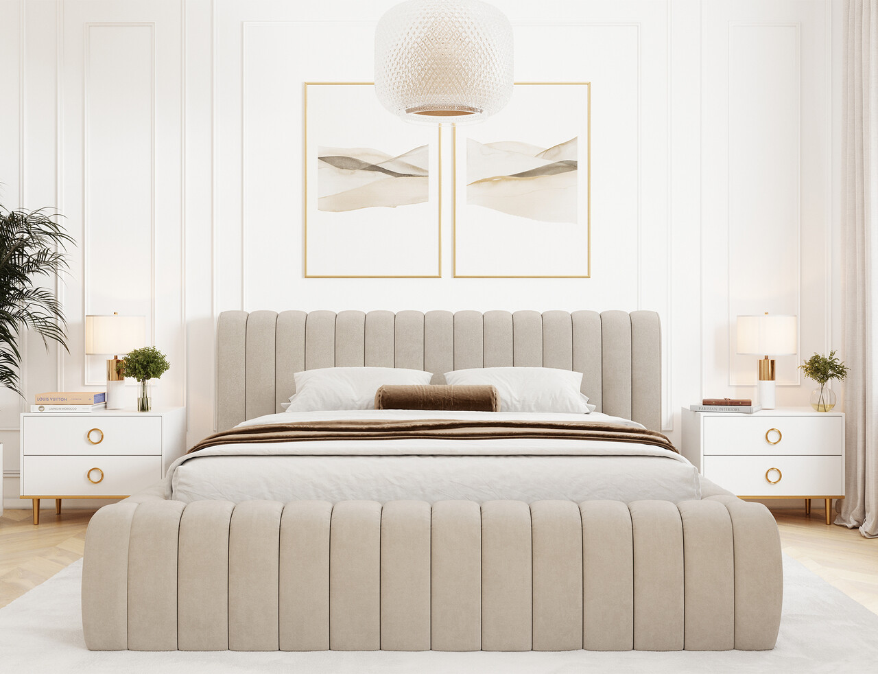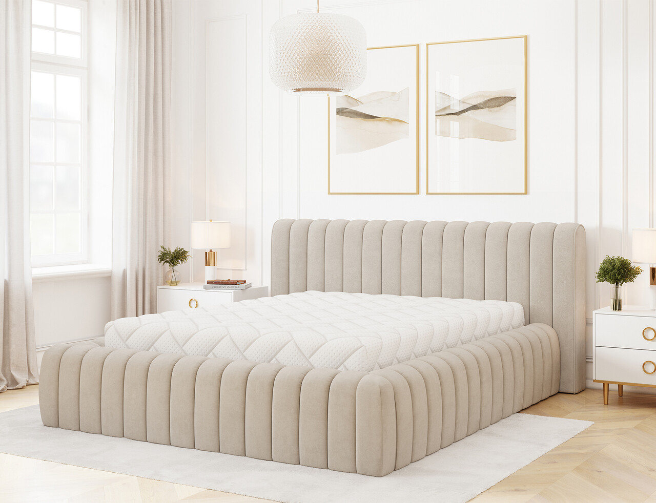 Pat tapitat cu somiera rabatabila si lada depozitare 160x200 cm ELTAP 18SO-1.6 Carilla metal/poliester bej deschis