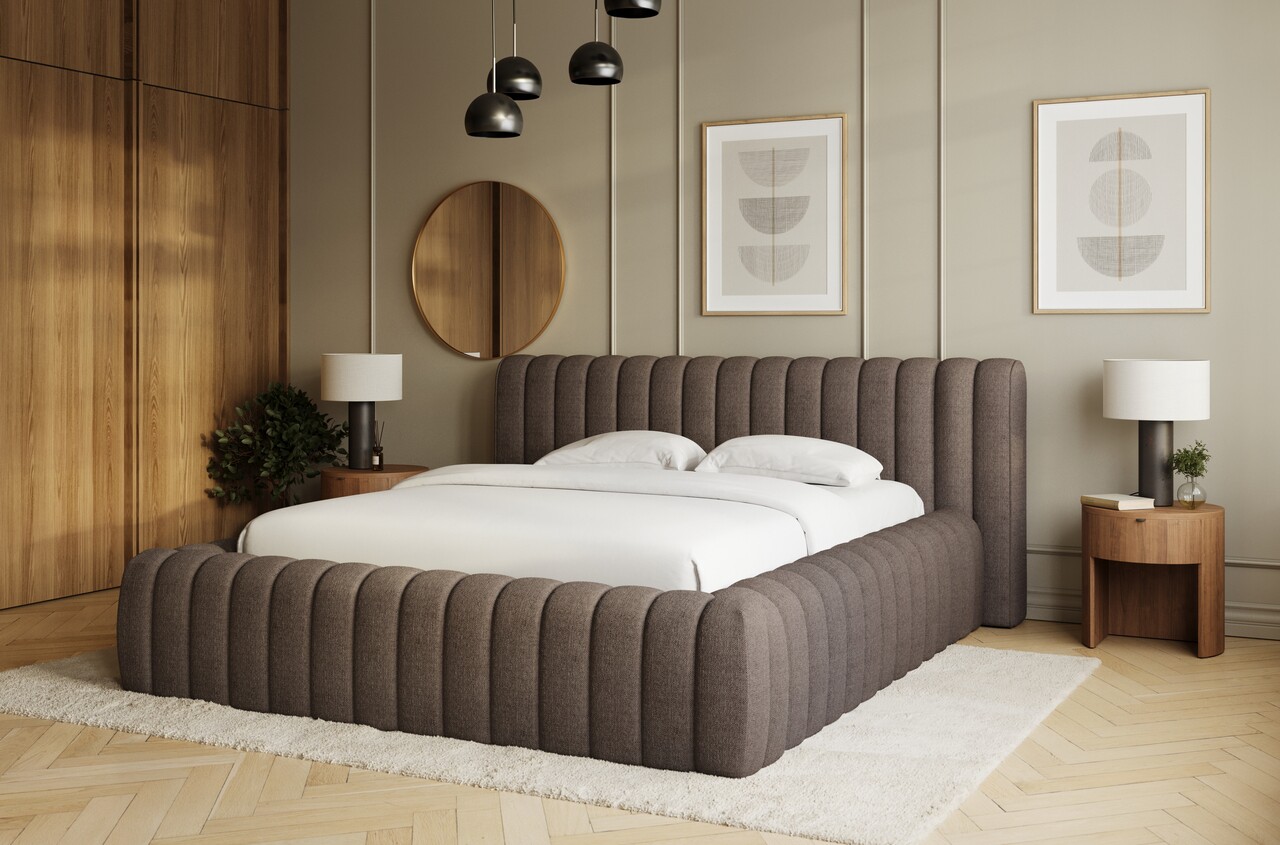Pat tapitat cu somiera rabatabila si lada depozitare 160x200 cm ELTAP 22TON-1.6 Carilla metal/poliester maro