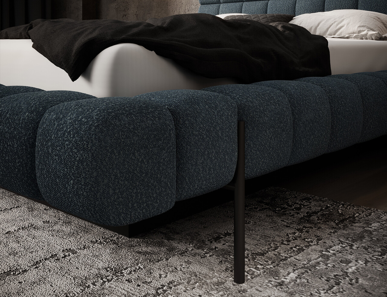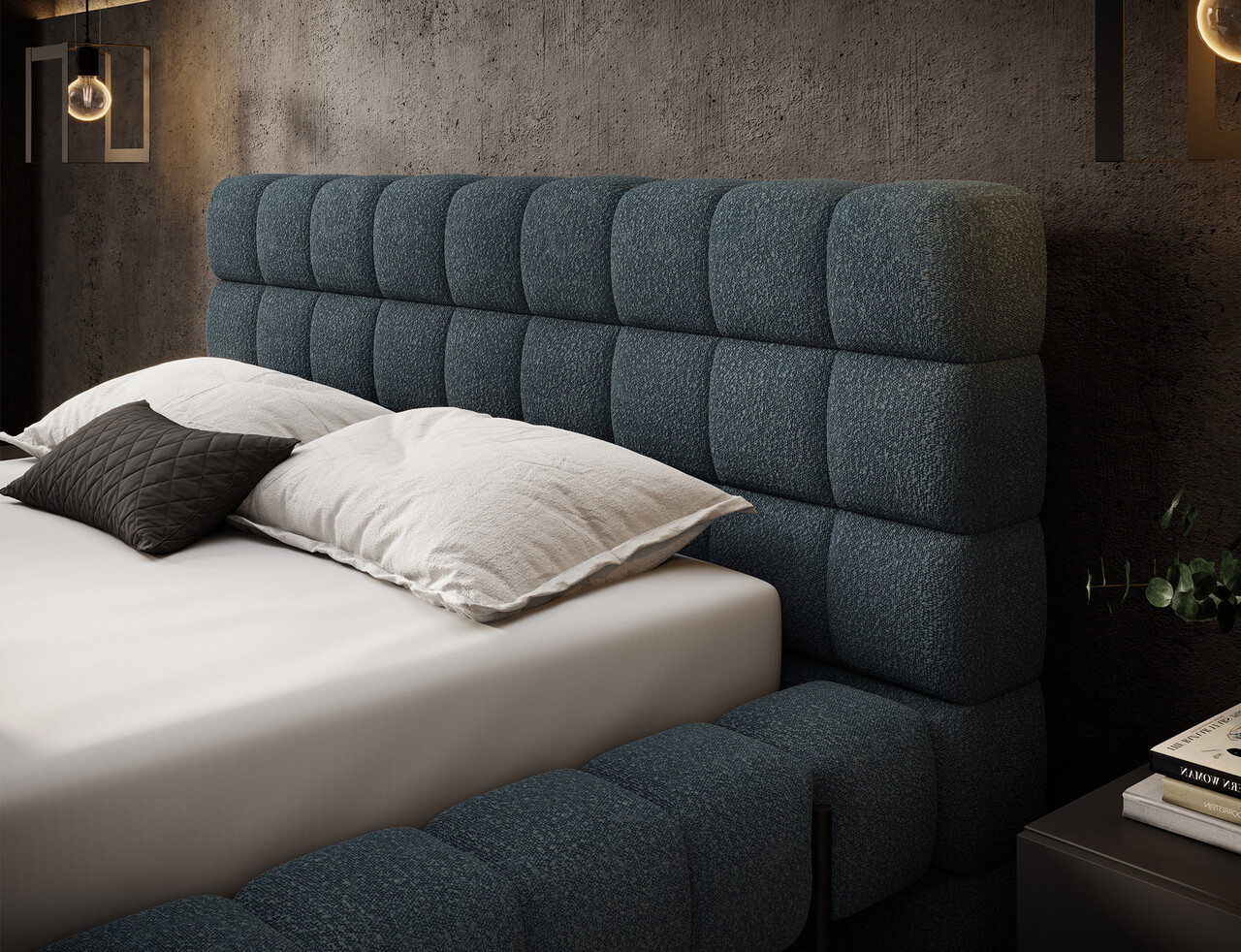 Patul Magentta reprezinta o combinatie de design modern, functionalitate si confort deosebit. Datorita spatarului tapitat, patul are un aspect extrem de elegant si adauga o nota de caldura oricarui dormitor. Structura solida si spatarul umplut cu spuma T2130 ofera un suport excelent si confort atat pentru somn, cat si pentru relaxare. Modelul este disponibil in trei dimensiuni: 140 cm, 160 cm si 180 cm, permitand adaptarea acestuia la dimensiunea camerei si la preferintele individuale. Cadrul metalic include 36 de lamele care sustin uniform salteaua, sporind durabilitatea constructiei si confortul utilizarii. Piciorul negru din metal ofera o baza solida si accentueaza caracterul minimalist si modern al patului. Un avantaj suplimentar este lada de depozitare pentru lenjerie care permite stocarea practica a pilotelor, pernelor sau altor textile, economisind spatiu in camera. Patul Magentta este alegerea ideala pentru cei care apreciaza stilul modern, confortul si solutiile functionale.Compozitie materialMaterial tapiterie: 100% poliester (tesatura primara Jaffray 40).Material cadru: metalUmplutura cadru: spuma T2130Umplutura spatar: spuma T2130Picioare din metal de culoare neagra.Informatii si dimensiuni specificeInaltime sezut: 44 cmInaltime picioare: 21 cmGreutatea maxima suportata: 250 kgDimensiuni lada depozitare: 177x120x29 cmSomiera rabatabila cu piston pe gazNumar lamele: 36Suprafata de dormit: 160x200 cmProdusul necesita asamblare, asamblat partial.