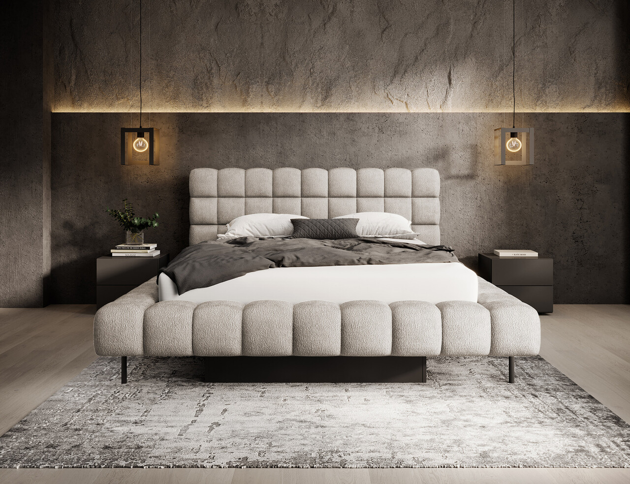 Patul Magentta reprezinta o combinatie de design modern, functionalitate si confort deosebit. Datorita spatarului tapitat, patul are un aspect extrem de elegant si adauga o nota de caldura oricarui dormitor. Structura solida si spatarul umplut cu spuma T2130 ofera un suport excelent si confort atat pentru somn, cat si pentru relaxare. Modelul este disponibil in trei dimensiuni: 140 cm, 160 cm si 180 cm, permitand adaptarea acestuia la dimensiunea camerei si la preferintele individuale. Cadrul metalic include 36 de lamele care sustin uniform salteaua, sporind durabilitatea constructiei si confortul utilizarii. Piciorul negru din metal ofera o baza solida si accentueaza caracterul minimalist si modern al patului. Un avantaj suplimentar este lada de depozitare pentru lenjerie care permite stocarea practica a pilotelor, pernelor sau altor textile, economisind spatiu in camera. Patul Magentta este alegerea ideala pentru cei care apreciaza stilul modern, confortul si solutiile functionale.Compozitie materialMaterial tapiterie: 100% poliester (tesatura primara Touch 18).Material cadru: metalUmplutura cadru: spuma T2130Umplutura spatar: spuma T2130Picioare din metal de culoare neagra.Informatii si dimensiuni specificeInaltime sezut: 44 cmInaltime picioare: 21 cmGreutatea maxima suportata: 250 kgDimensiuni lada depozitare: 177x120x29 cmSomiera rabatabila cu piston pe gazNumar lamele: 36Suprafata de dormit: 160x200 cmProdusul necesita asamblare, asamblat partial.
