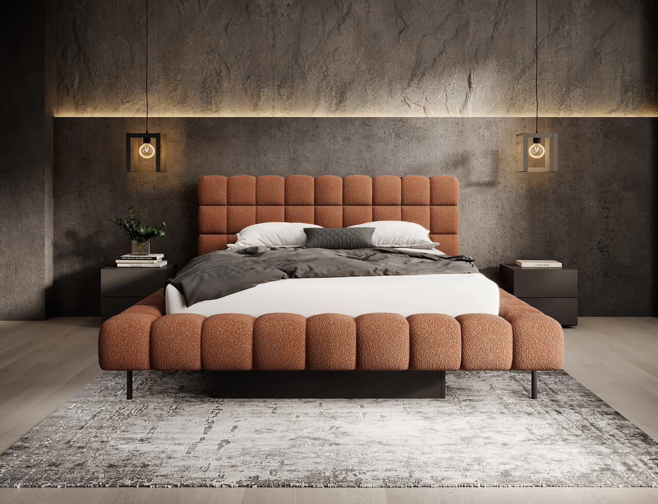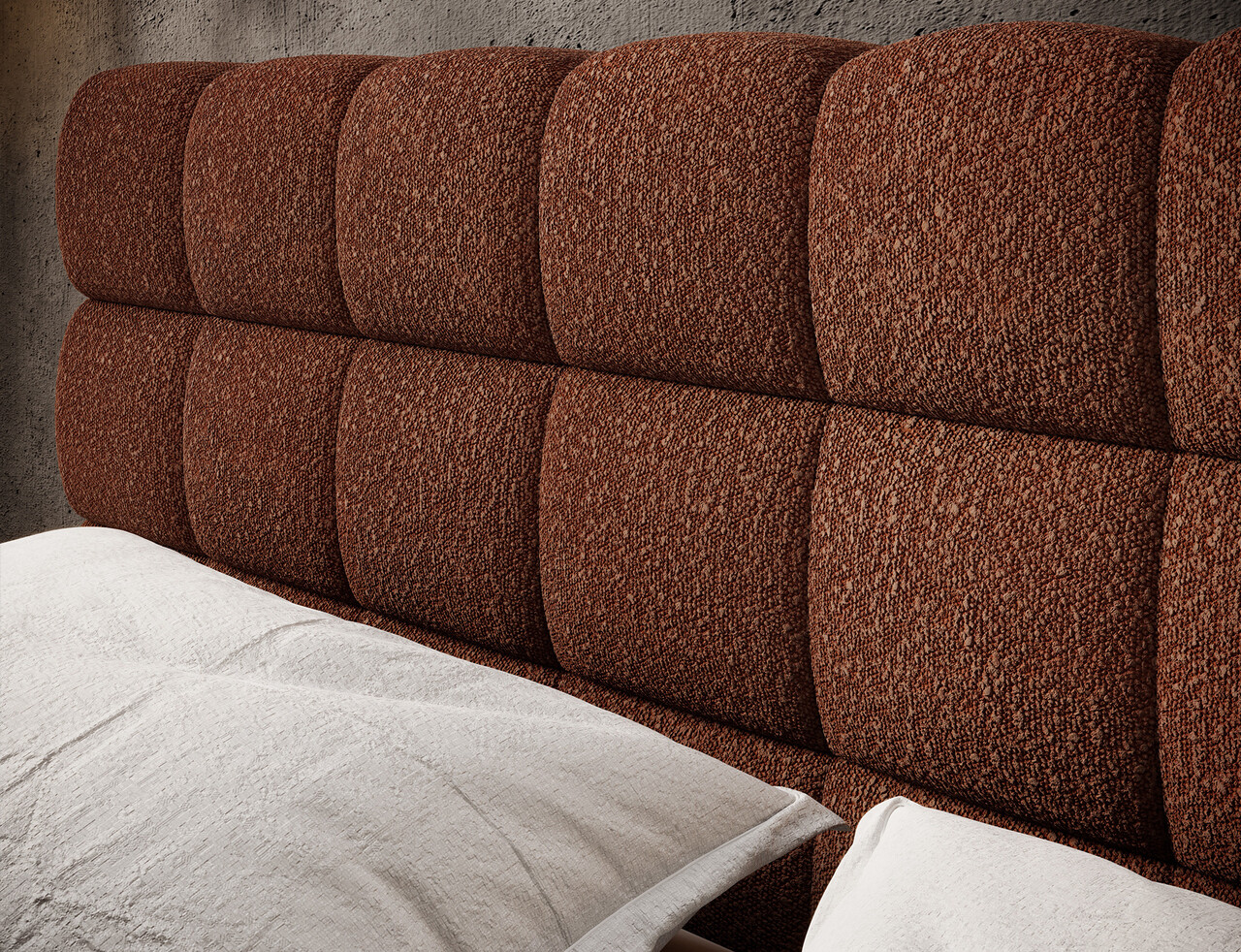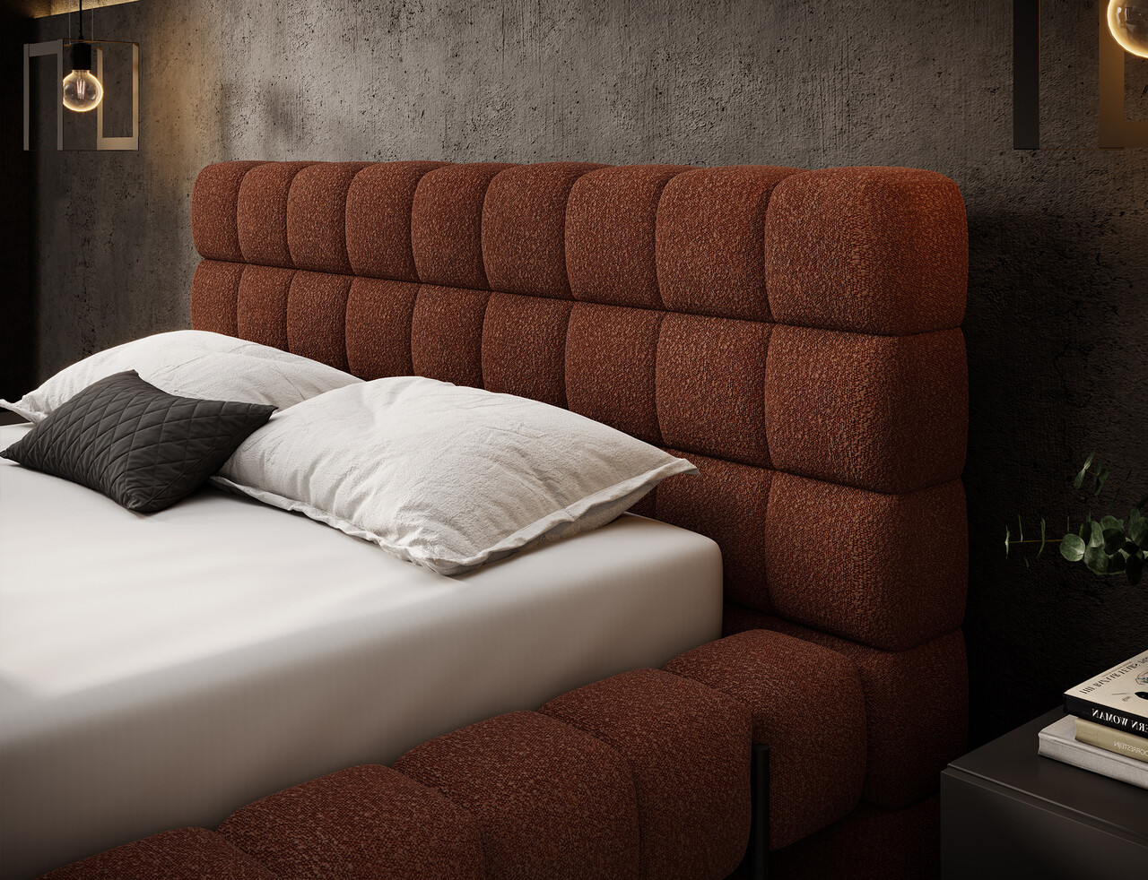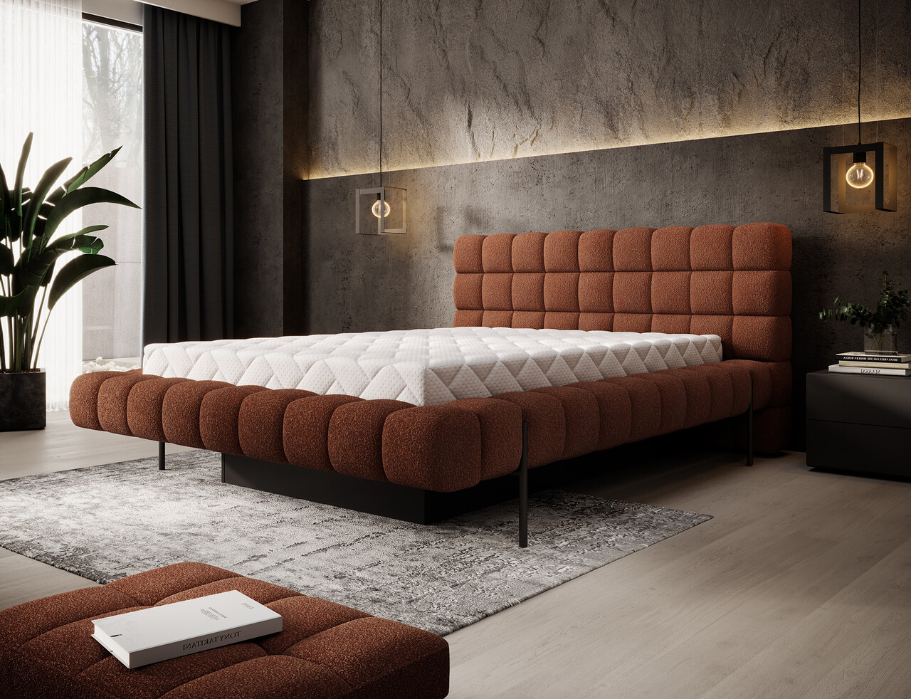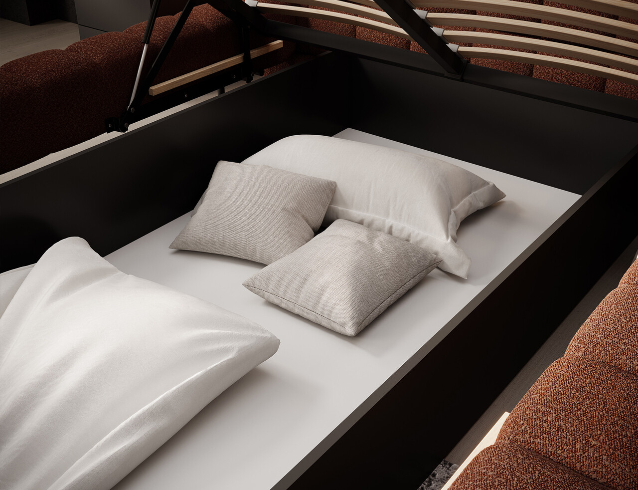Pat tapitat cu somiera rabatabila si lada depozitare 160x200 cm ELTAP Magentta metal/poliester caramiziu