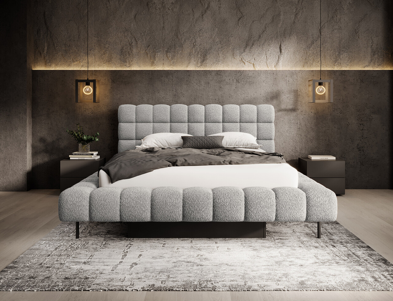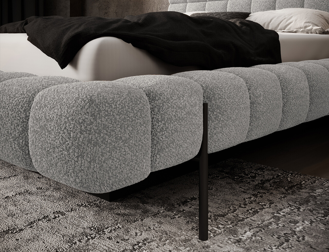Patul Magentta reprezinta o combinatie de design modern, functionalitate si confort deosebit. Datorita spatarului tapitat, patul are un aspect extrem de elegant si adauga o nota de caldura oricarui dormitor. Structura solida si spatarul umplut cu spuma T2130 ofera un suport excelent si confort atat pentru somn, cat si pentru relaxare. Modelul este disponibil in trei dimensiuni: 140 cm, 160 cm si 180 cm, permitand adaptarea acestuia la dimensiunea camerei si la preferintele individuale. Cadrul metalic include 36 de lamele care sustin uniform salteaua, sporind durabilitatea constructiei si confortul utilizarii. Piciorul negru din metal ofera o baza solida si accentueaza caracterul minimalist si modern al patului. Un avantaj suplimentar este lada de depozitare pentru lenjerie care permite stocarea practica a pilotelor, pernelor sau altor textile, economisind spatiu in camera. Patul Magentta este alegerea ideala pentru cei care apreciaza stilul modern, confortul si solutiile functionale.Compozitie materialMaterial tapiterie: 100% poliester (tesatura primara Royal 04).Material cadru: metalUmplutura cadru: spuma T2130Umplutura spatar: spuma T2130Picioare din metal de culoare neagra.Informatii si dimensiuni specificeInaltime sezut: 44 cmInaltime picioare: 21 cmGreutatea maxima suportata: 250 kgDimensiuni lada depozitare: 177x120x29 cmSomiera rabatabila cu piston pe gazNumar lamele: 36Suprafata de dormit: 160x200 cmProdusul necesita asamblare, asamblat partial.