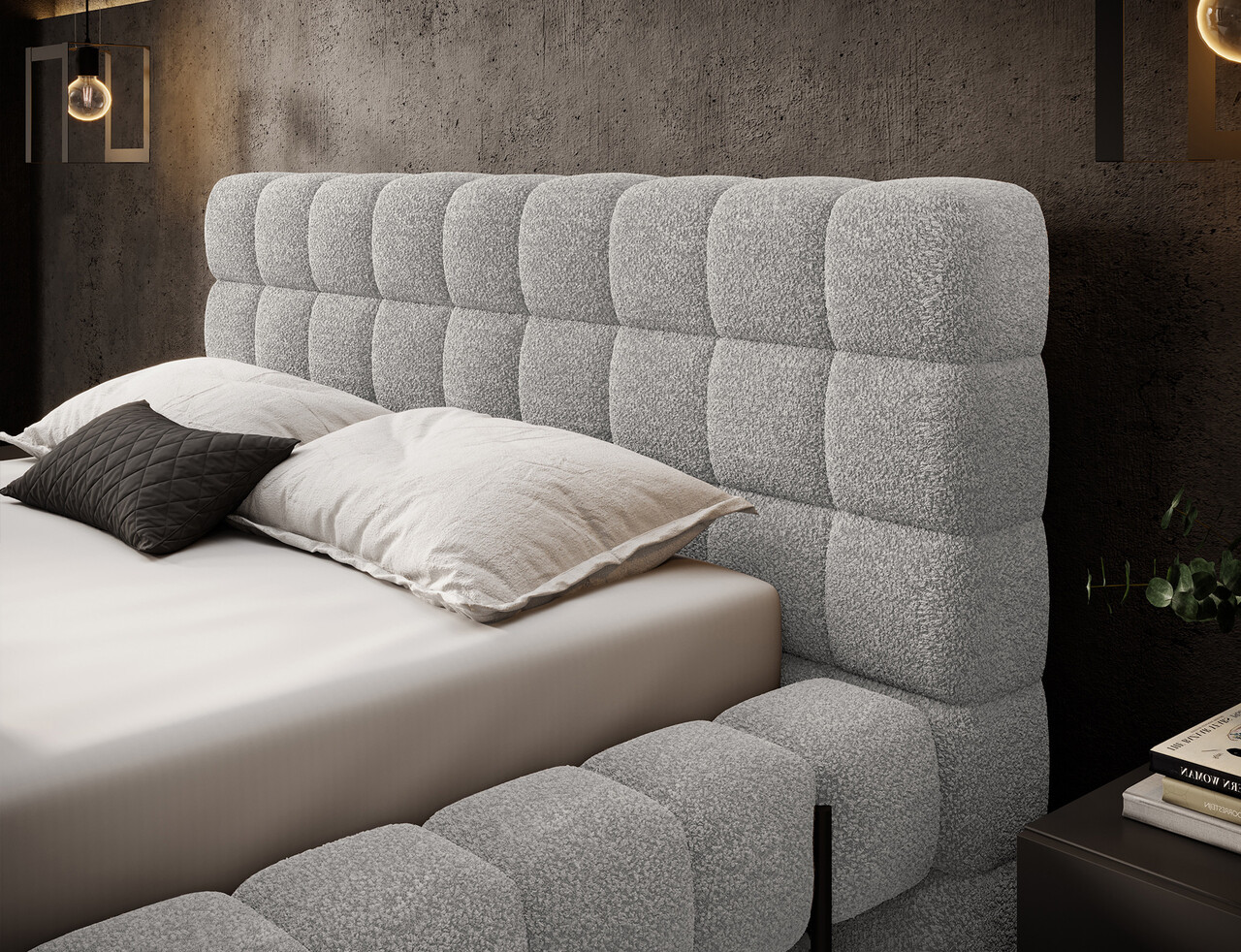 Pat tapitat cu somiera rabatabila si lada depozitare 160x200 cm ELTAP Magentta metal/poliester gri deschis