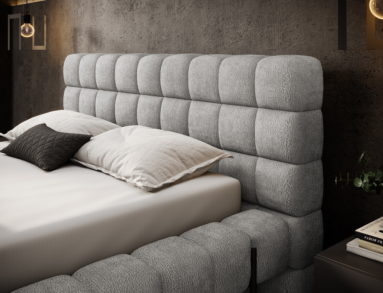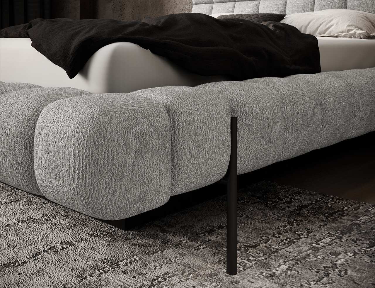 Patul Magentta reprezinta o combinatie de design modern, functionalitate si confort deosebit. Datorita spatarului tapitat, patul are un aspect extrem de elegant si adauga o nota de caldura oricarui dormitor. Structura solida si spatarul umplut cu spuma T2130 ofera un suport excelent si confort atat pentru somn, cat si pentru relaxare. Modelul este disponibil in trei dimensiuni: 140 cm, 160 cm si 180 cm, permitand adaptarea acestuia la dimensiunea camerei si la preferintele individuale. Cadrul metalic include 36 de lamele care sustin uniform salteaua, sporind durabilitatea constructiei si confortul utilizarii. Piciorul negru din metal ofera o baza solida si accentueaza caracterul minimalist si modern al patului. Un avantaj suplimentar este lada de depozitare pentru lenjerie care permite stocarea practica a pilotelor, pernelor sau altor textile, economisind spatiu in camera. Patul Magentta este alegerea ideala pentru cei care apreciaza stilul modern, confortul si solutiile functionale.Compozitie materialMaterial tapiterie: 100% poliester (tesatura primara Touch 03).Material cadru: metalUmplutura cadru: spuma T2130Umplutura spatar: spuma T2130Picioare din metal de culoare neagra.Informatii si dimensiuni specificeInaltime sezut: 44 cmInaltime picioare: 21 cmGreutatea maxima suportata: 250 kgDimensiuni lada depozitare: 177x120x29 cmSomiera rabatabila cu piston pe gazNumar lamele: 36Suprafata de dormit: 160x200 cmProdusul necesita asamblare, asamblat partial.