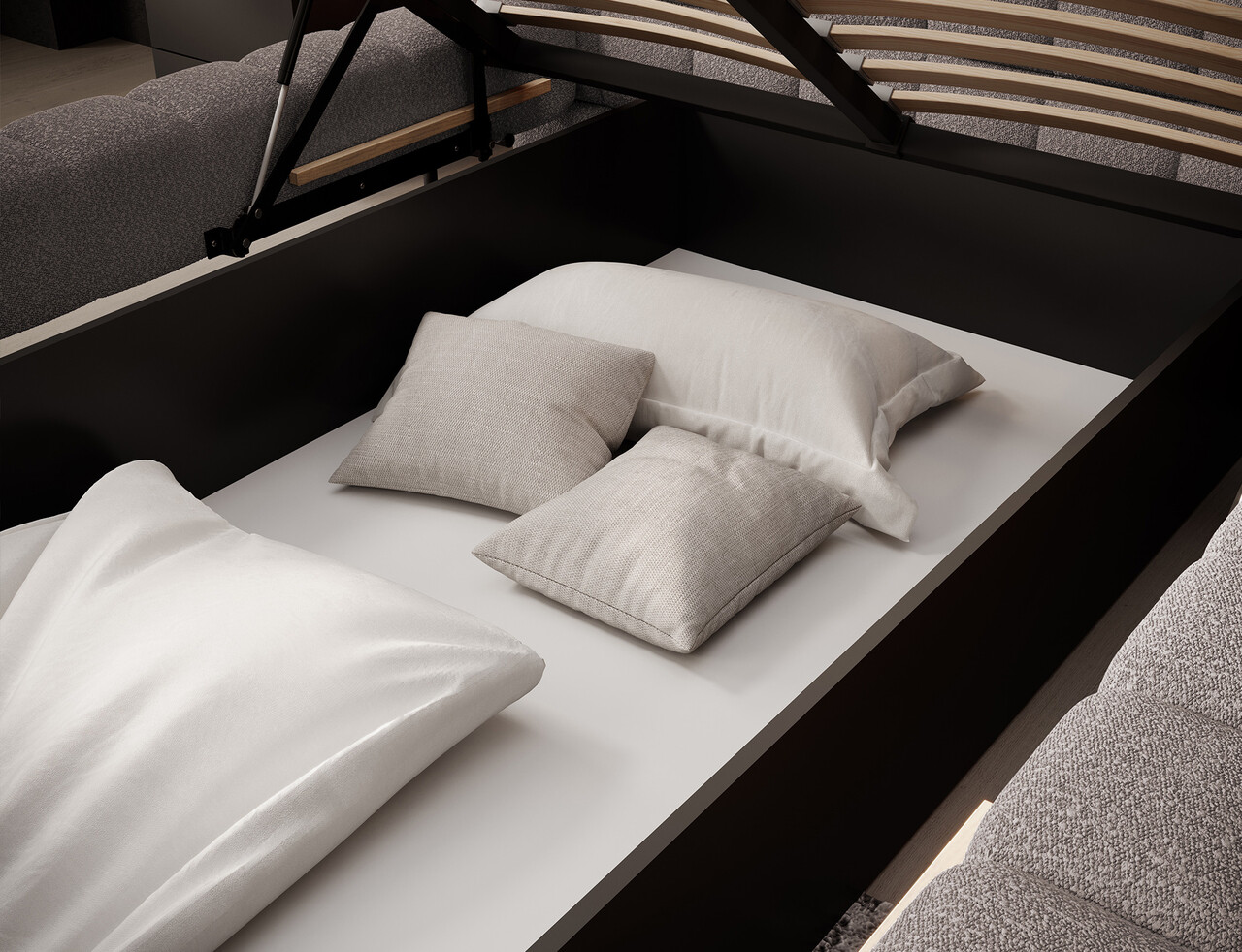 Pat tapitat cu somiera rabatabila si lada depozitare 160x200 cm ELTAP Magentta metal/poliester gri