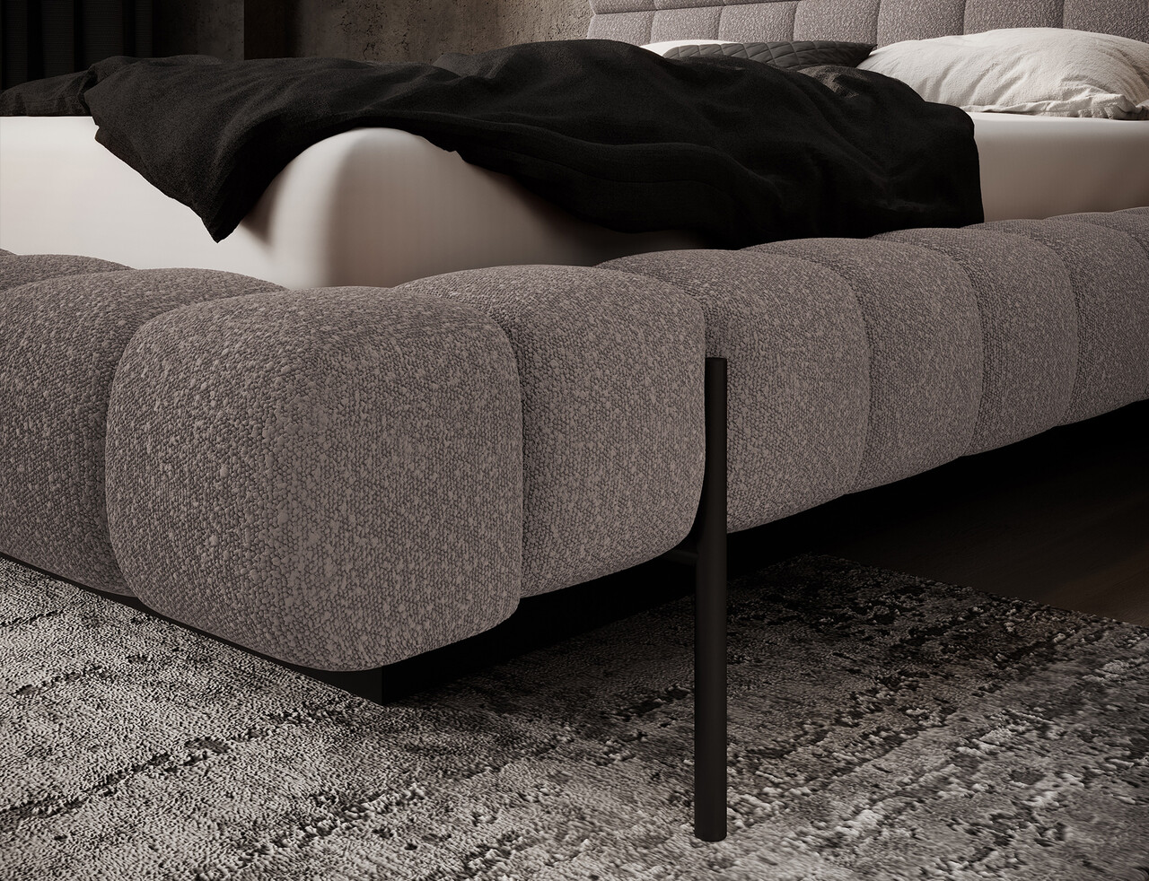 Patul Magentta reprezinta o combinatie de design modern, functionalitate si confort deosebit. Datorita spatarului tapitat, patul are un aspect extrem de elegant si adauga o nota de caldura oricarui dormitor. Structura solida si spatarul umplut cu spuma T2130 ofera un suport excelent si confort atat pentru somn, cat si pentru relaxare. Modelul este disponibil in trei dimensiuni: 140 cm, 160 cm si 180 cm, permitand adaptarea acestuia la dimensiunea camerei si la preferintele individuale. Cadrul metalic include 36 de lamele care sustin uniform salteaua, sporind durabilitatea constructiei si confortul utilizarii. Piciorul negru din metal ofera o baza solida si accentueaza caracterul minimalist si modern al patului. Un avantaj suplimentar este lada de depozitare pentru lenjerie care permite stocarea practica a pilotelor, pernelor sau altor textile, economisind spatiu in camera. Patul Magentta este alegerea ideala pentru cei care apreciaza stilul modern, confortul si solutiile functionale.Compozitie materialMaterial tapiterie: 100% poliester (tesatura primara Jaffray 03).Material cadru: metalUmplutura cadru: spuma T2130Umplutura spatar: spuma T2130Picioare din metal de culoare neagra.Informatii si dimensiuni specificeInaltime sezut: 44 cmInaltime picioare: 21 cmGreutatea maxima suportata: 250 kgDimensiuni lada depozitare: 177x120x29 cmSomiera rabatabila cu piston pe gazNumar lamele: 36Suprafata de dormit: 160x200 cmProdusul necesita asamblare, asamblat partial.