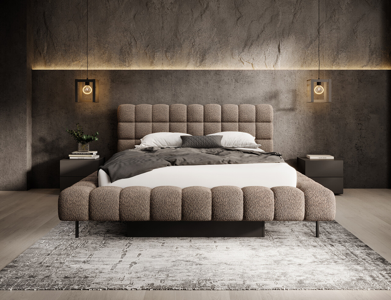 Patul Magentta reprezinta o combinatie de design modern, functionalitate si confort deosebit. Datorita spatarului tapitat, patul are un aspect extrem de elegant si adauga o nota de caldura oricarui dormitor. Structura solida si spatarul umplut cu spuma T2130 ofera un suport excelent si confort atat pentru somn, cat si pentru relaxare. Modelul este disponibil in trei dimensiuni: 140 cm, 160 cm si 180 cm, permitand adaptarea acestuia la dimensiunea camerei si la preferintele individuale. Cadrul metalic include 36 de lamele care sustin uniform salteaua, sporind durabilitatea constructiei si confortul utilizarii. Piciorul negru din metal ofera o baza solida si accentueaza caracterul minimalist si modern al patului. Un avantaj suplimentar este lada de depozitare pentru lenjerie care permite stocarea practica a pilotelor, pernelor sau altor textile, economisind spatiu in camera. Patul Magentta este alegerea ideala pentru cei care apreciaza stilul modern, confortul si solutiile functionale.Compozitie materialMaterial tapiterie: 100% poliester (tesatura primara Royal 20).Material cadru: metalUmplutura cadru: spuma T2130Umplutura spatar: spuma T2130Picioare din metal de culoare neagra.Informatii si dimensiuni specificeInaltime sezut: 44 cmInaltime picioare: 21 cmGreutatea maxima suportata: 250 kgDimensiuni lada depozitare: 177x120x29 cmSomiera rabatabila cu piston pe gazNumar lamele: 36Suprafata de dormit: 160x200 cmProdusul necesita asamblare, asamblat partial.