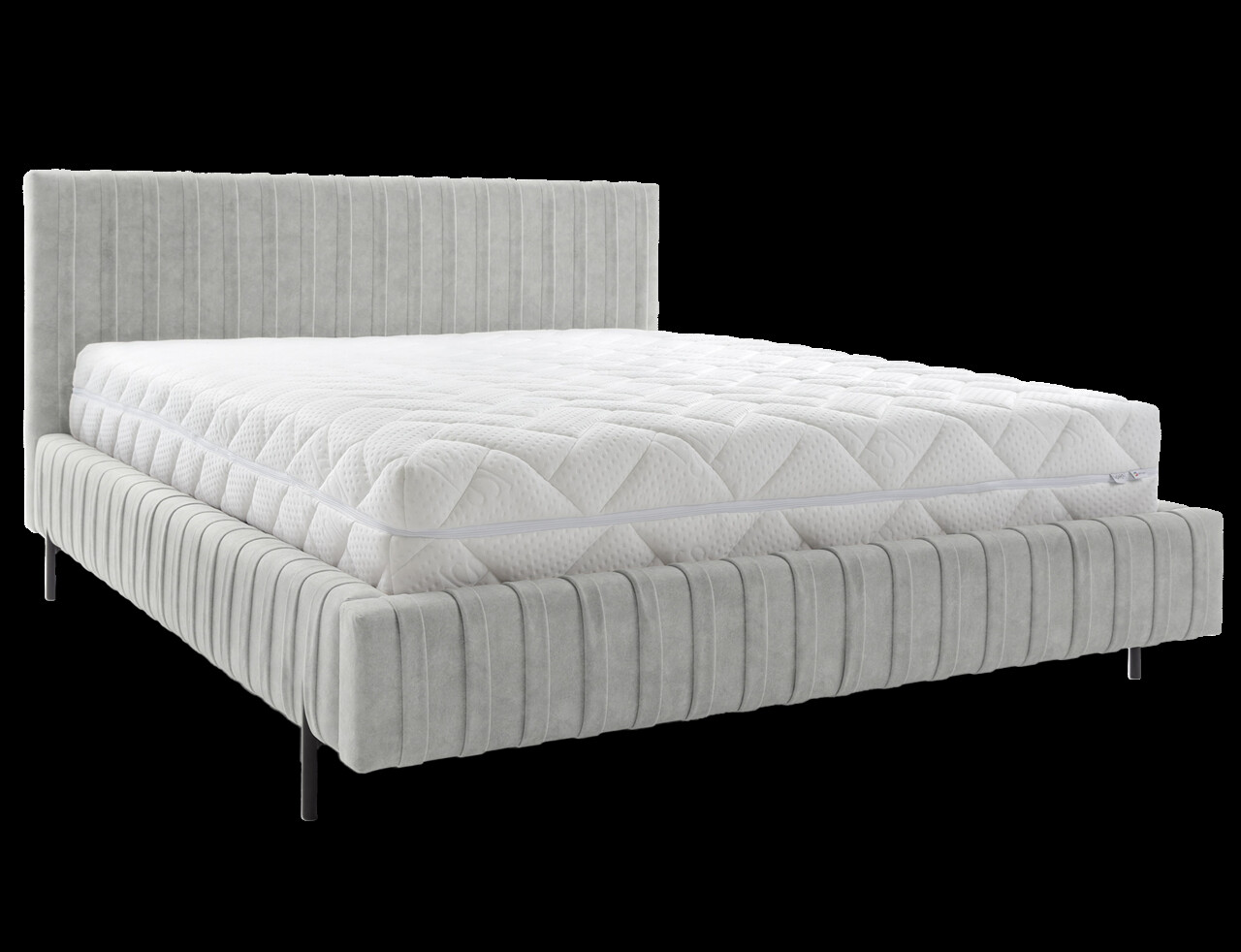 Pat tapitat cu somiera rabatabila si lada depozitare 160x200 cm ELTAP Plissa metal/poliester gri deschis