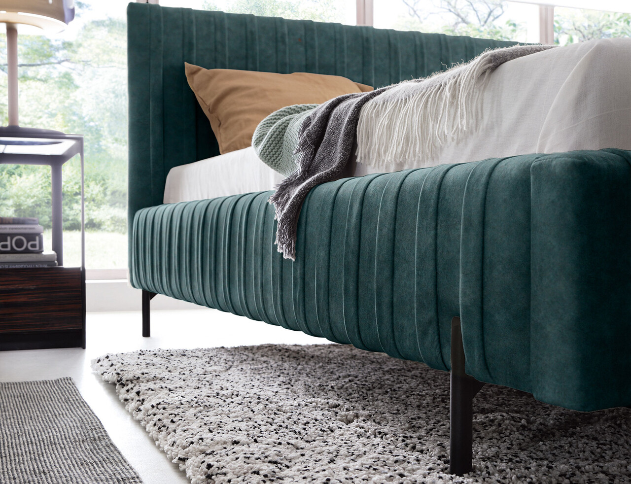 Plissa este un pat tapitat unic care captiveaza prin designul sau modern si functionalitatea sa. Are un cadru metalic solid pentru saltea si picioare metalice care asigura stabilitate si durabilitate. Patul se vinde fara saltea. Spatiul practic de depozitare de sub pat permite depozitarea comoda a lenjeriei de pat si a altor articole, fiind solutia perfecta pentru cei care apreciaza functionalitatea in dormitorul lor. Plissa nu este doar un pat, ci si un element decorativ elegant care adauga rafinament oricarui interior.Compozitie materialMaterial tapiterie: 100% poliester (tesatura primara Relax 38).Material cadru: metalUmplutura cadru: spuma T2130Umplutura spatar: spuma T2130Picioare din metal de culoare neagra.Informatii si dimensiuni specificeInaltime sezut: 37 cmInaltime picioare: 14 cmGreutatea maxima suportata: 200 kgDimensiuni lada depozitare: 160x200 cmSomiera rabatabila cu piston pe gazNumar lamele: 36Suprafata de dormit: 160x200 cmProdusul necesita asamblare, asamblat partial.