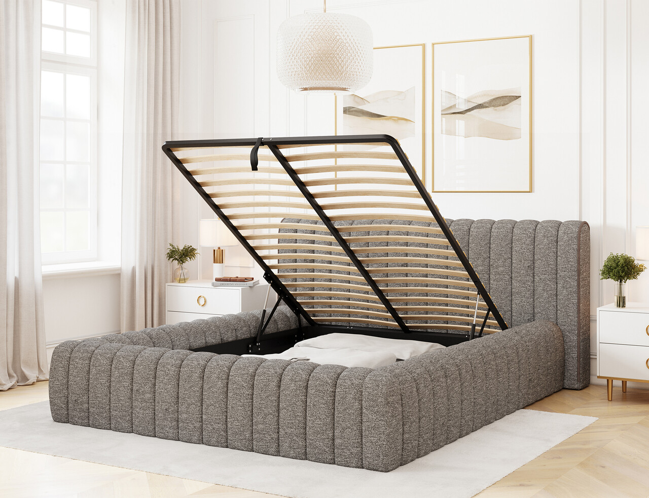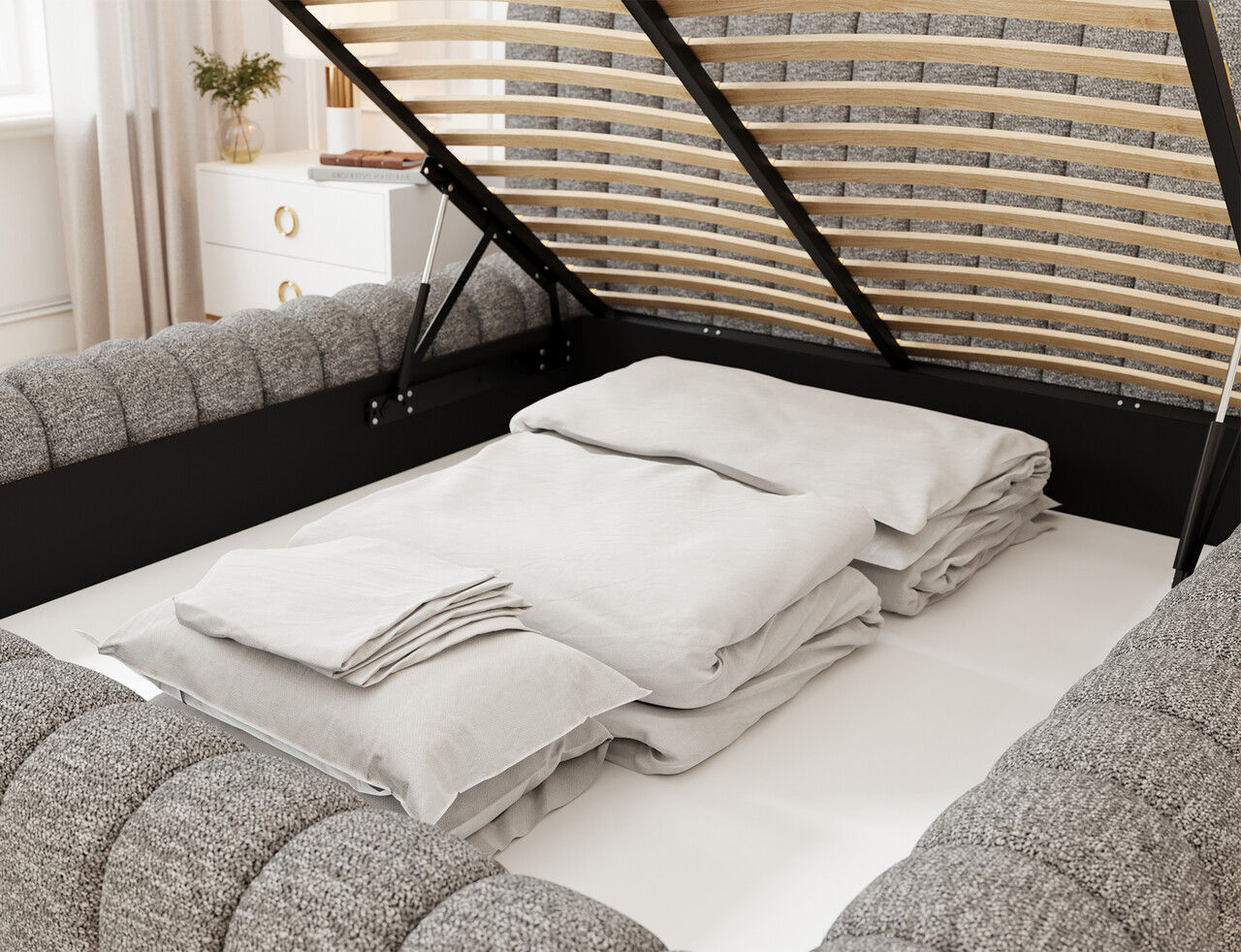 Pat tapitat cu somiera rabatabila si lada depozitare 180x200 cm ELTAP 03COR-1.8 Carilla metal/poliester gri
